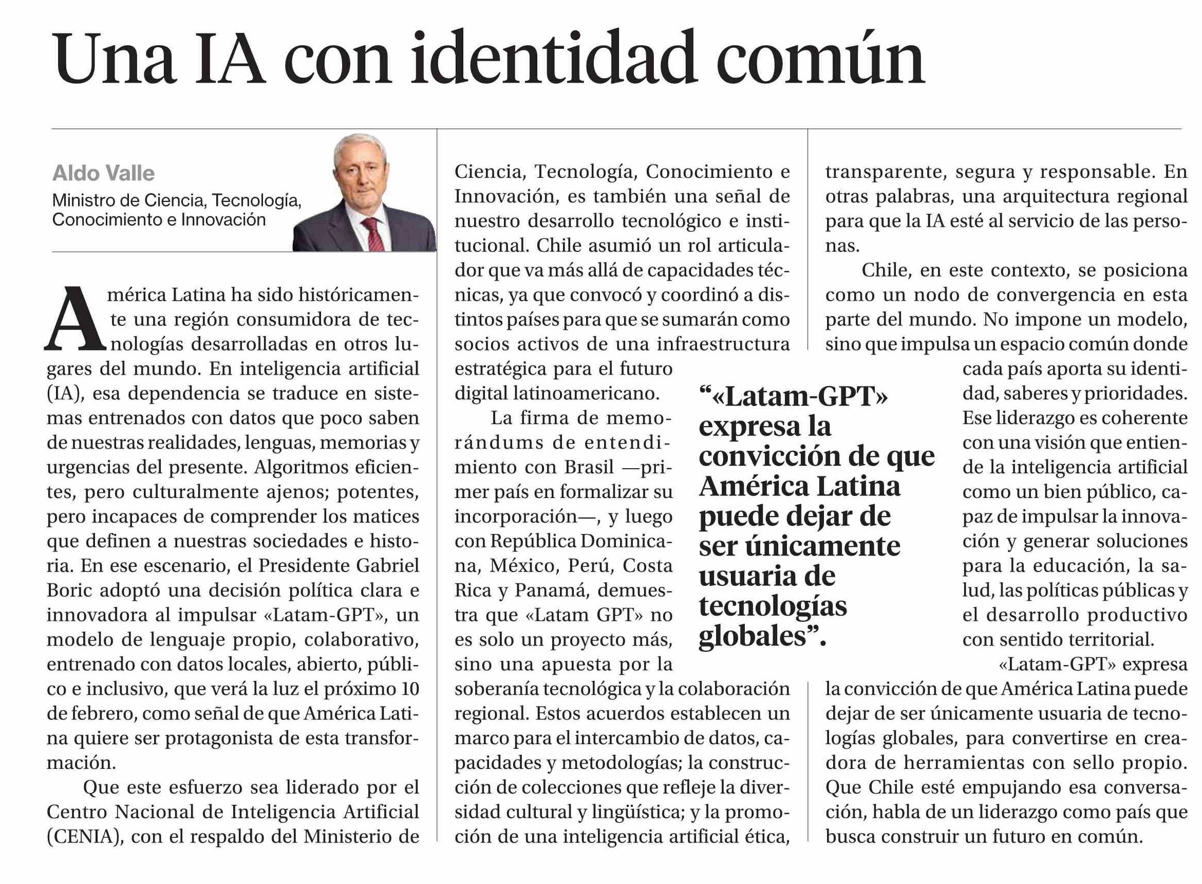 COLUMNAS DE OPINIÓN: Una IA con identidad común 06-02-2026 La Segunda |