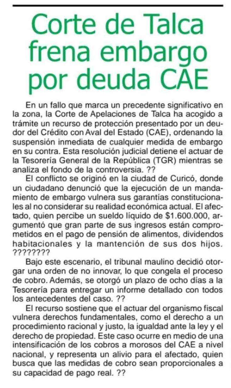 Corte de Talca frena embargo por deuda CAE 17-04-2026 Maule Hoy |