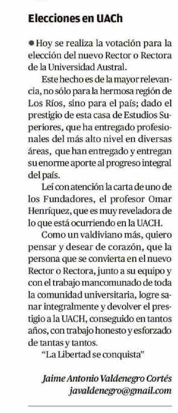 CARTAS: Elecciones en UACh 03-06-2025 Diario Austral Región de Los Ríos |