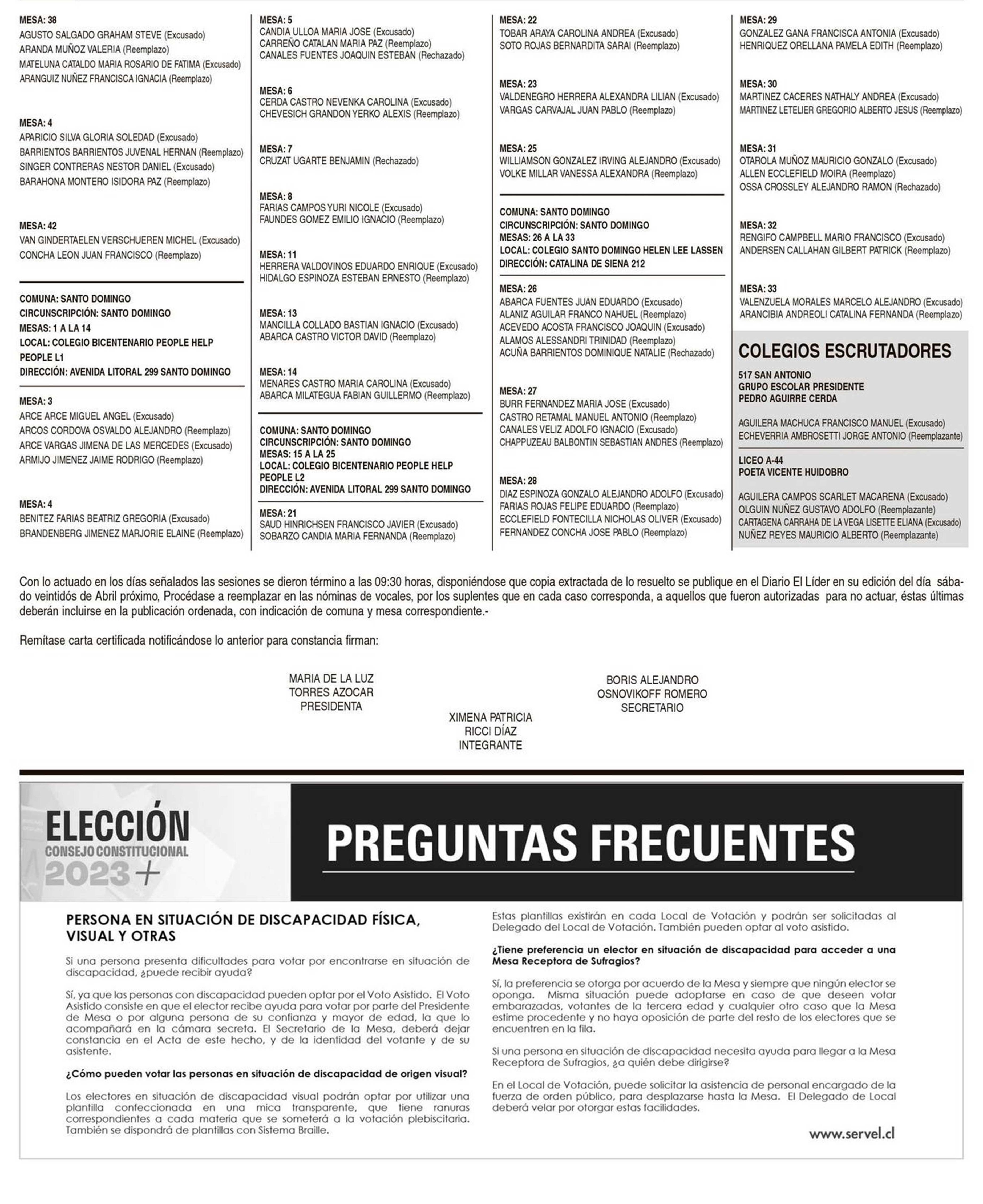 JUNTA ELECTORAL PROVINCIA DE SAN ANTONIO EXCUSAS Y EXCLUSIONES 22-04-2023 El Líder |