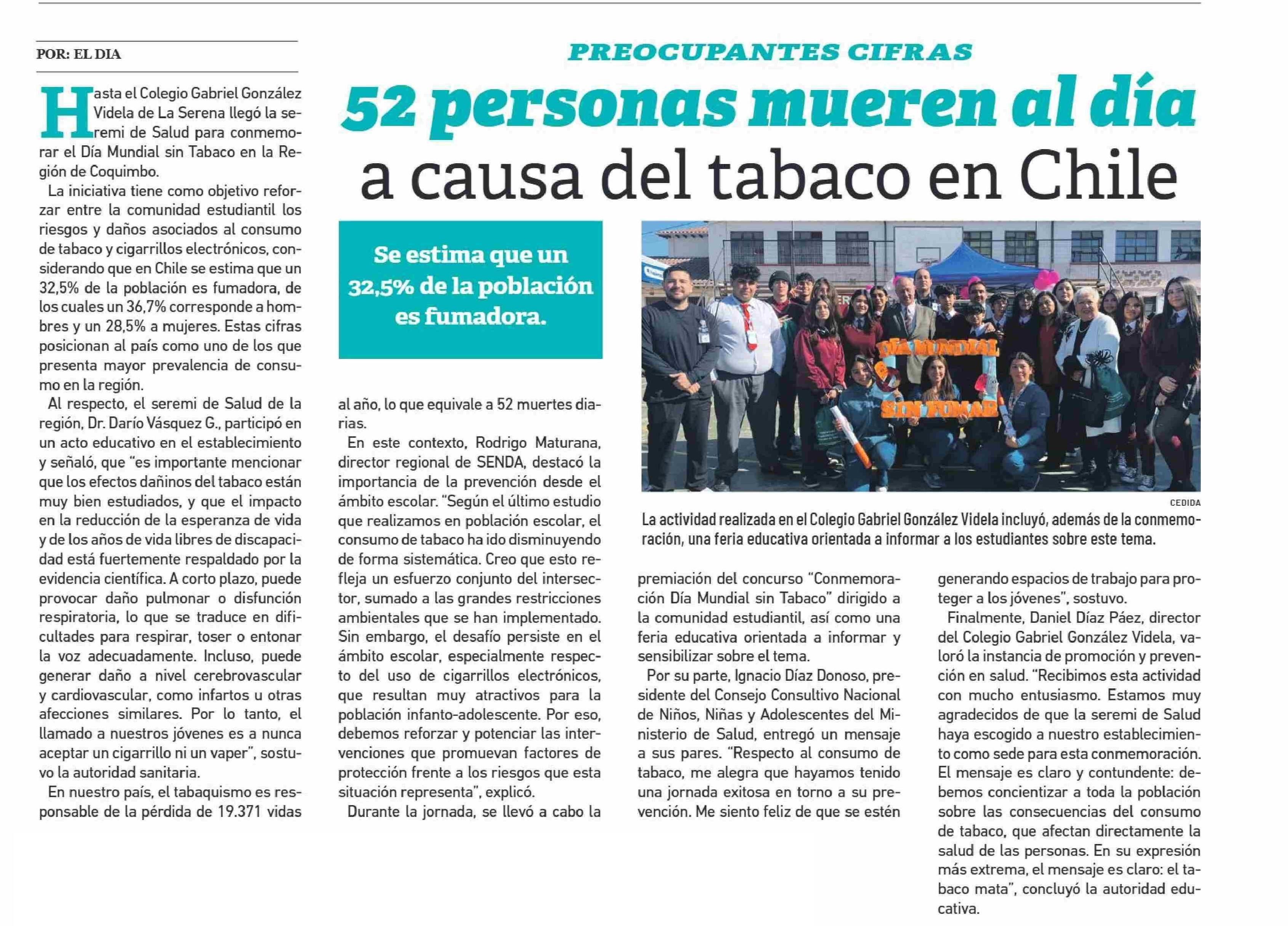 52 personas mueren al día a causa del tabaco en Chile 01-06-2025 El Día |