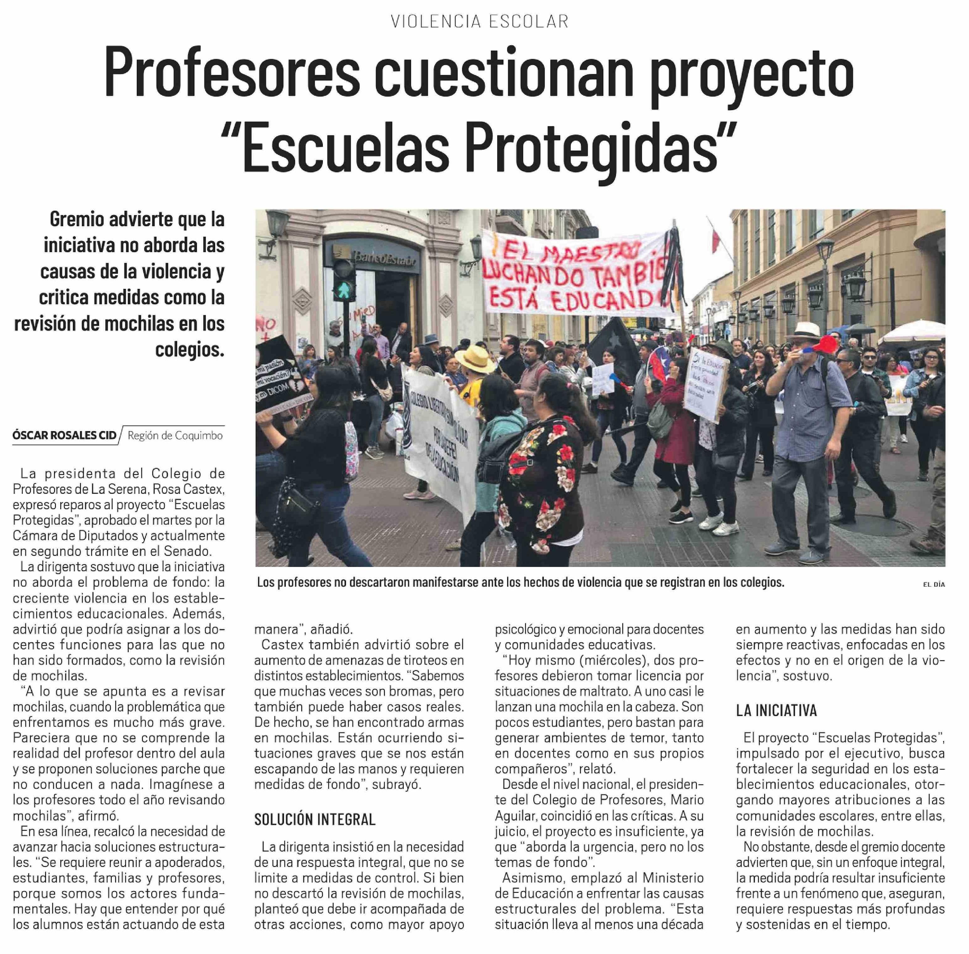 Profesores cuestionan proyecto "Escuelas Protegidas" 23-04-2026 El Día |