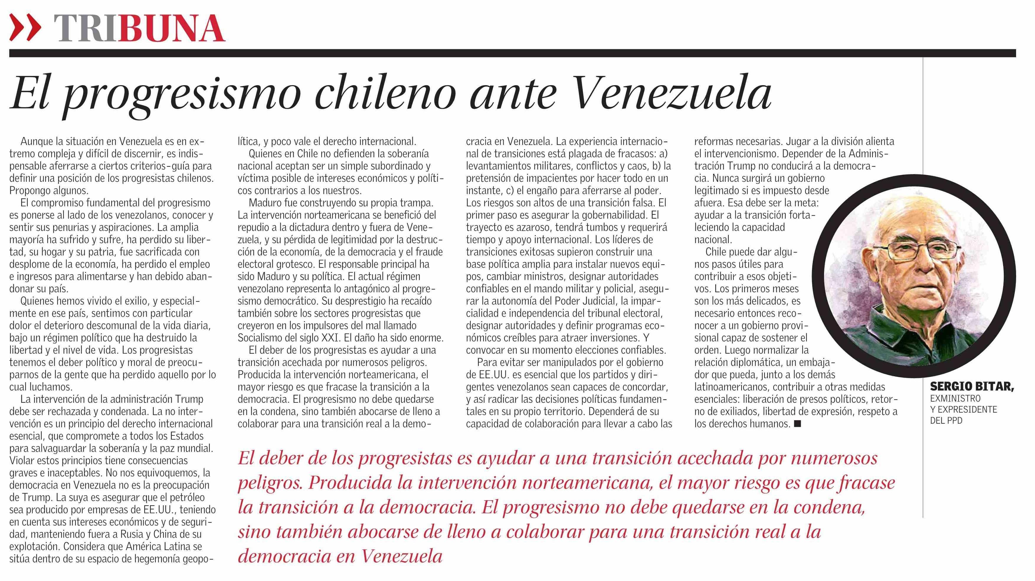 Columnas de Opinión: El progresismo chileno ante Venezuela 11-01-2026 El Mercurio |