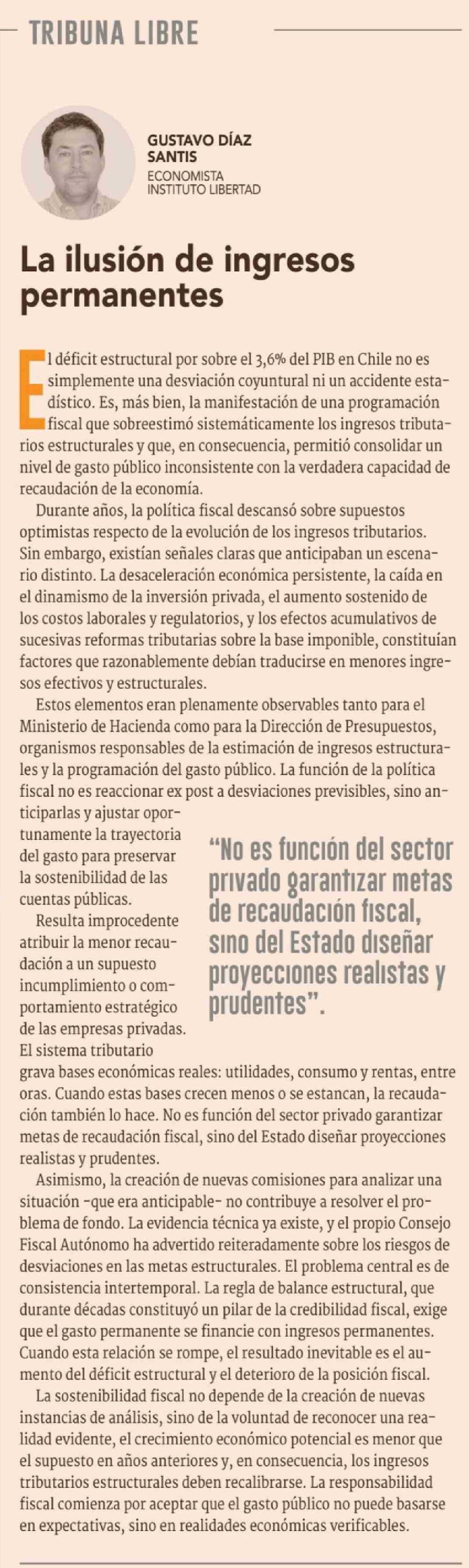 Columnas de Opinión: La ilusión de ingresos permanentes 24-02-2026 Diario Financiero |