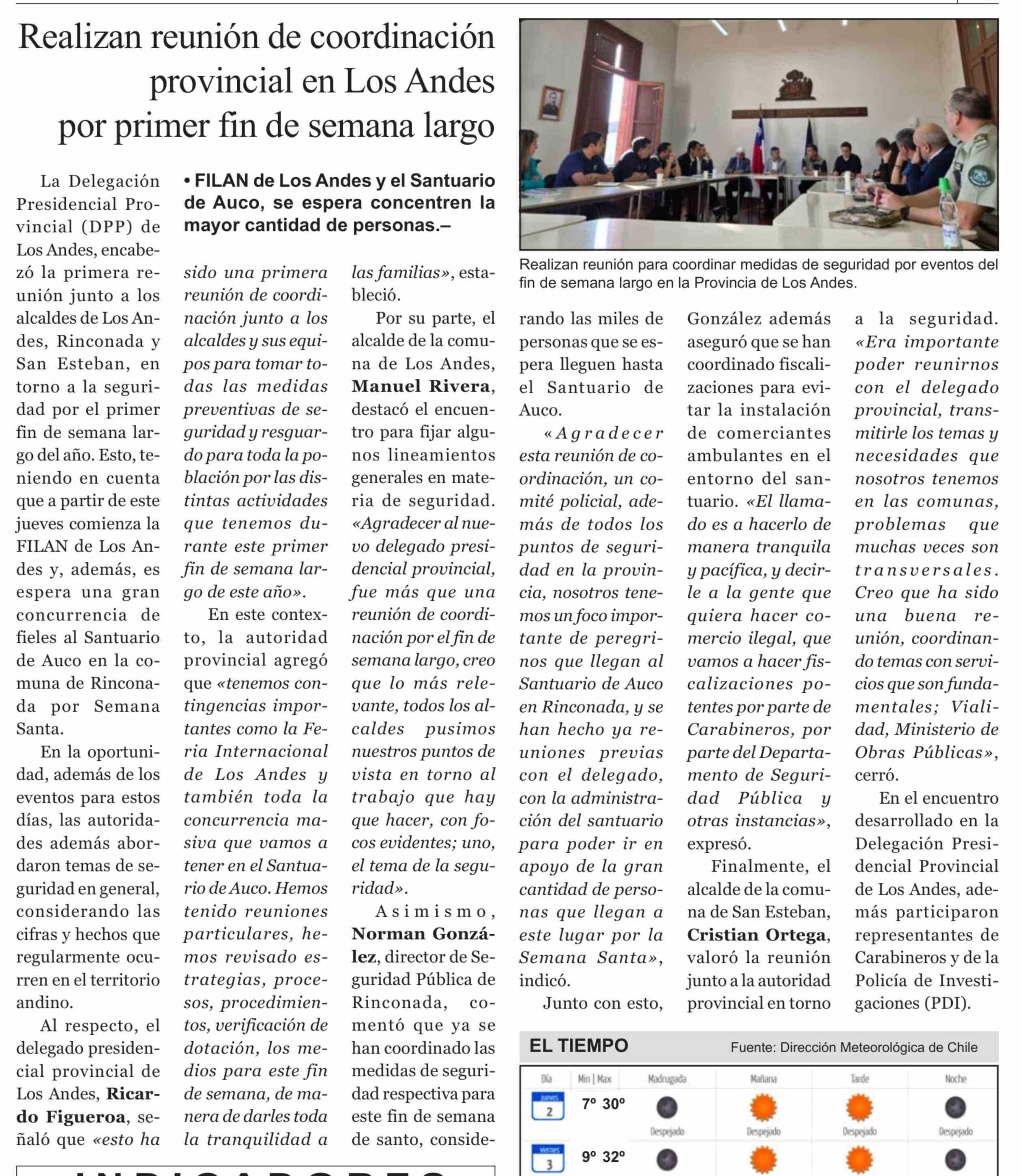 Título: Realizan reunión de coordinación provincial en Los Andes por primer fin de semana largo
