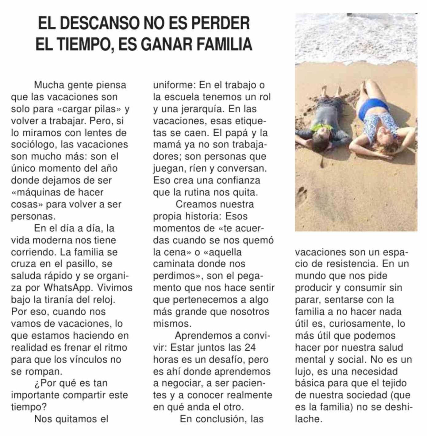 Título: EL DESCANSO NOES PERDER EL TIEMPO, ES GANAR FAMILIA