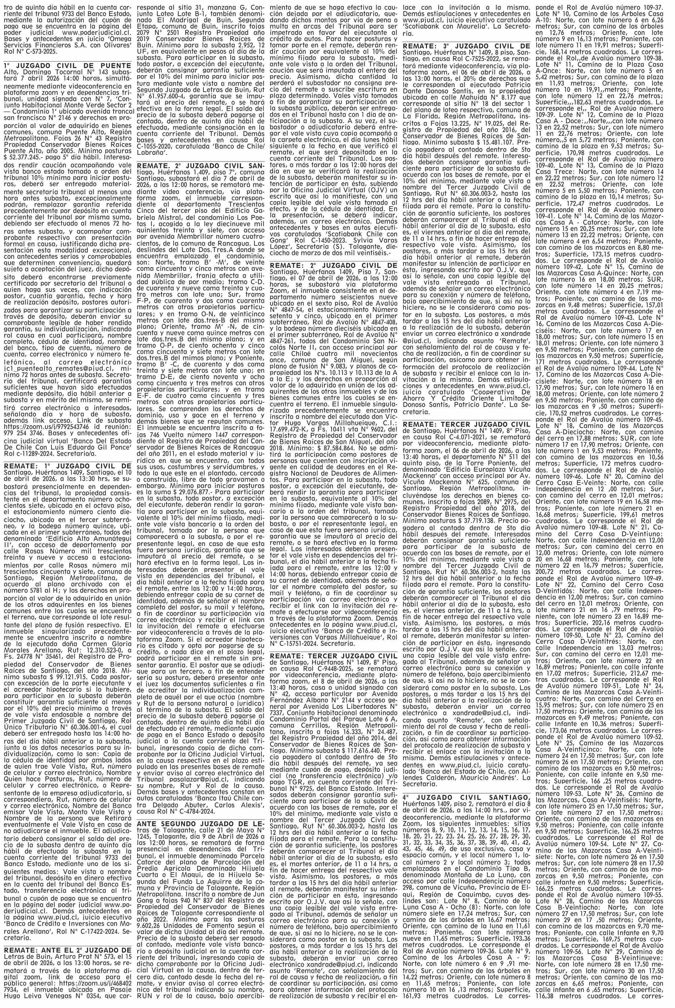 REMATES: PROPIEDADES 22-03-2026 El Mercurio |