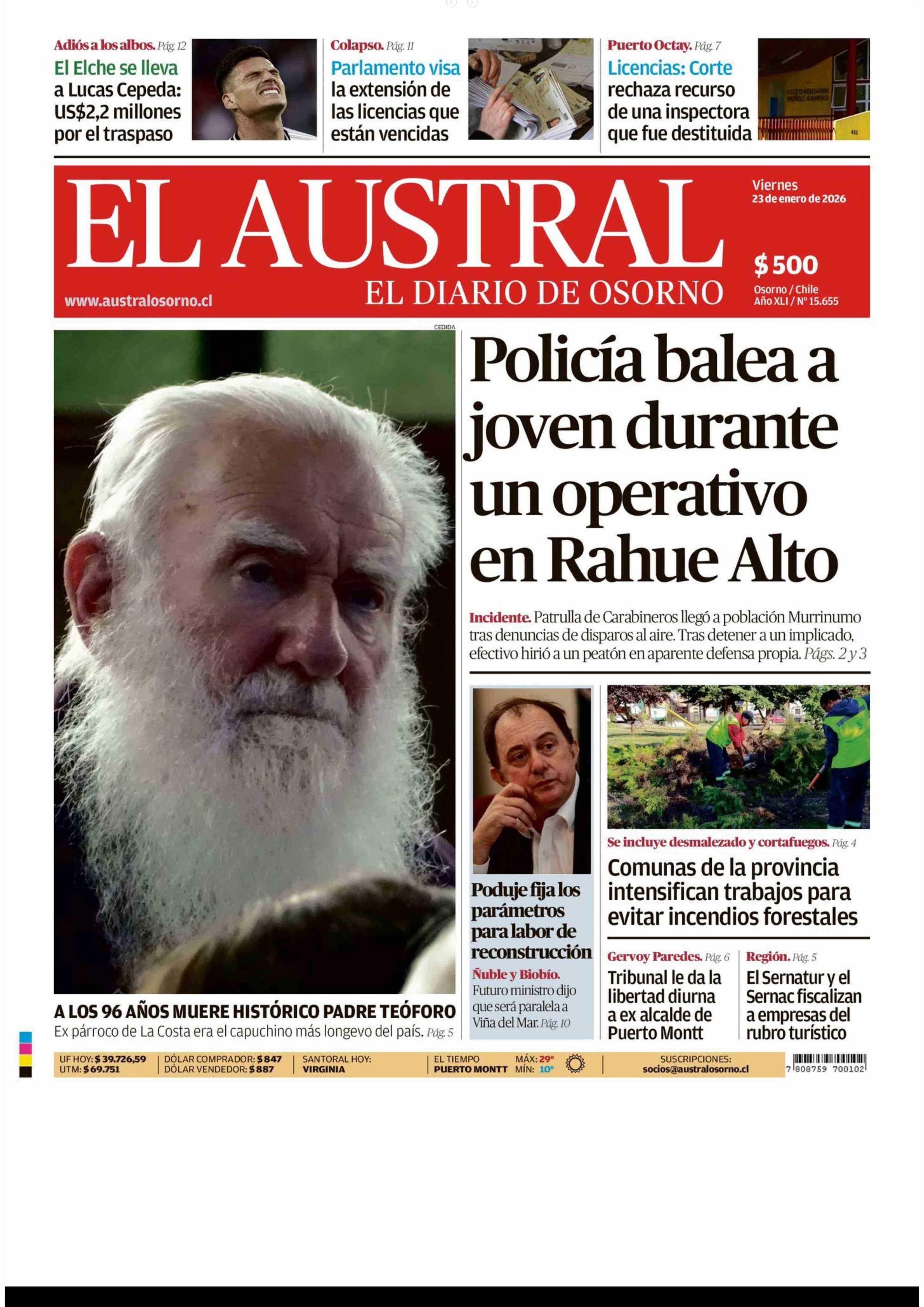 PORTADA EL AUSTRAL DE OSORNO CHILE 23-01-2026 El Austral de Osorno |