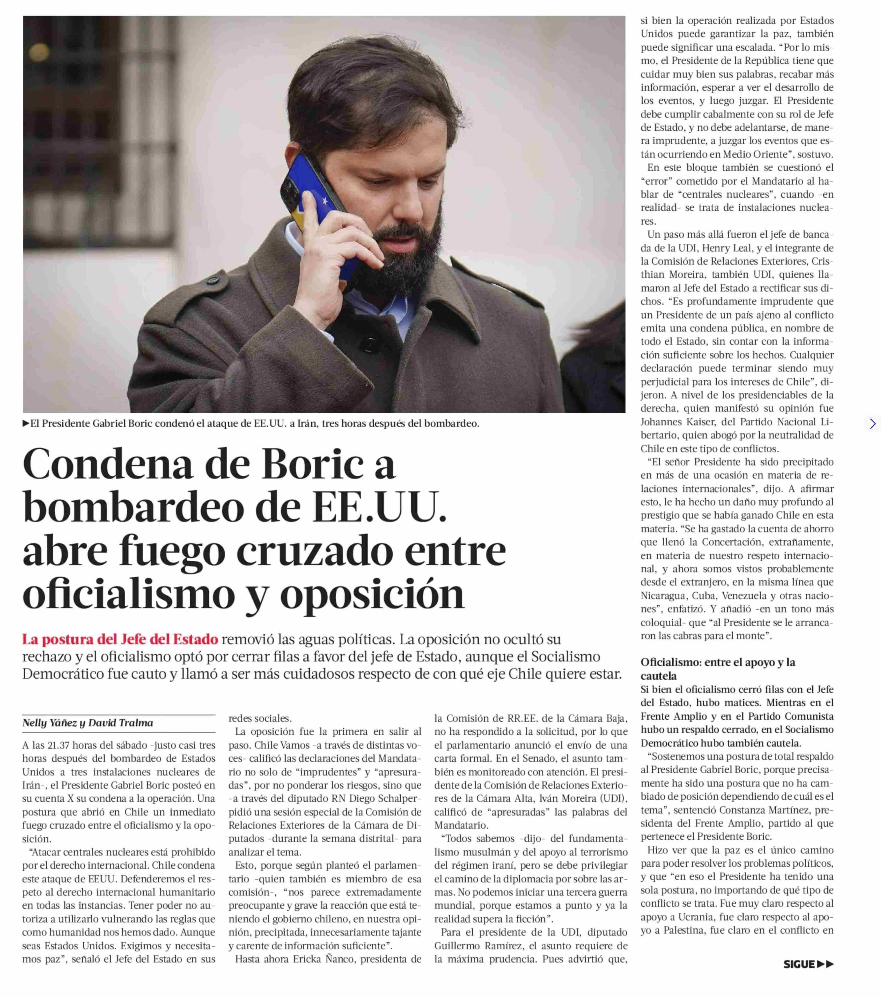 Título: Condena de Boric a bombardeo de EE.UU. abre fuego cruzado entre oficialismo y oposición