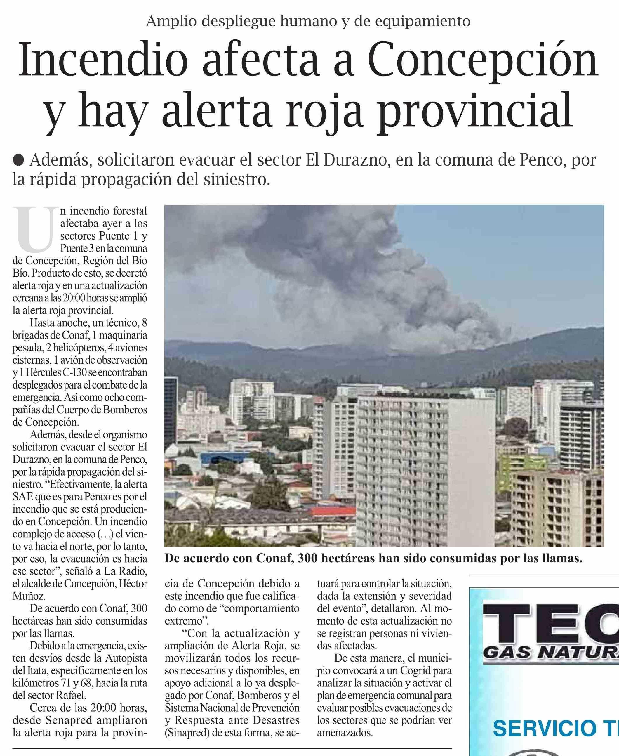 Título: Incendio afecta a Concepción y hay alerta roja provincial