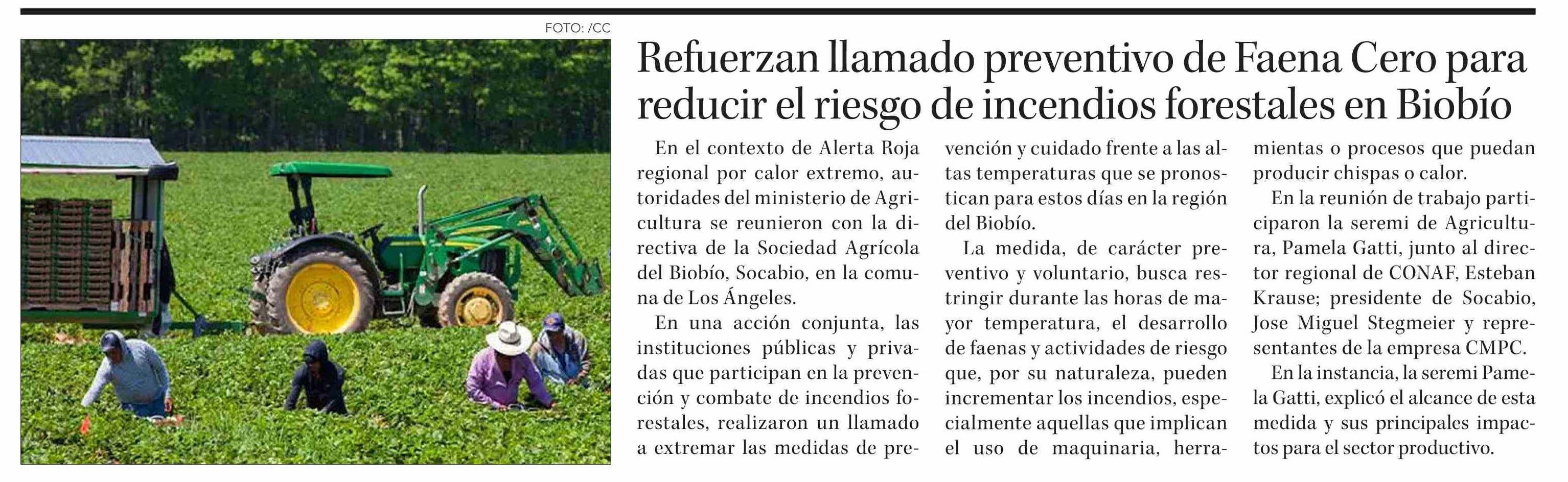 Refuerzan llamado preventivo de Faena Cero para reducir el riesgo de incendios forestales en Biobío 13-01-2026 Diario Concepción |