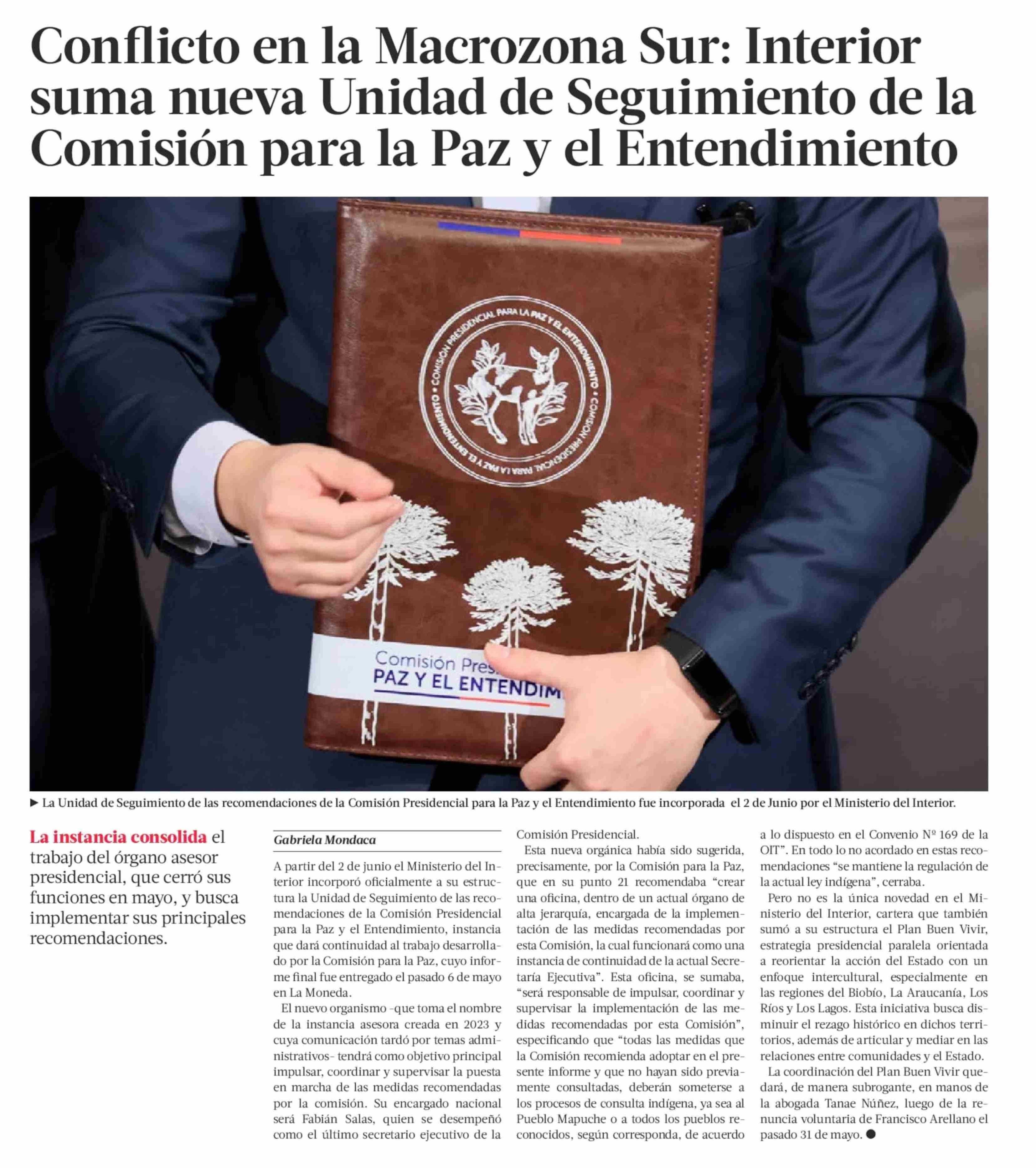 Conflicto en la Macrozona Sur: Interior suma nueva Unidad de Seguimiento de la Comisión para la Paz y el Entendimiento 06-06-2025 La Tercera |