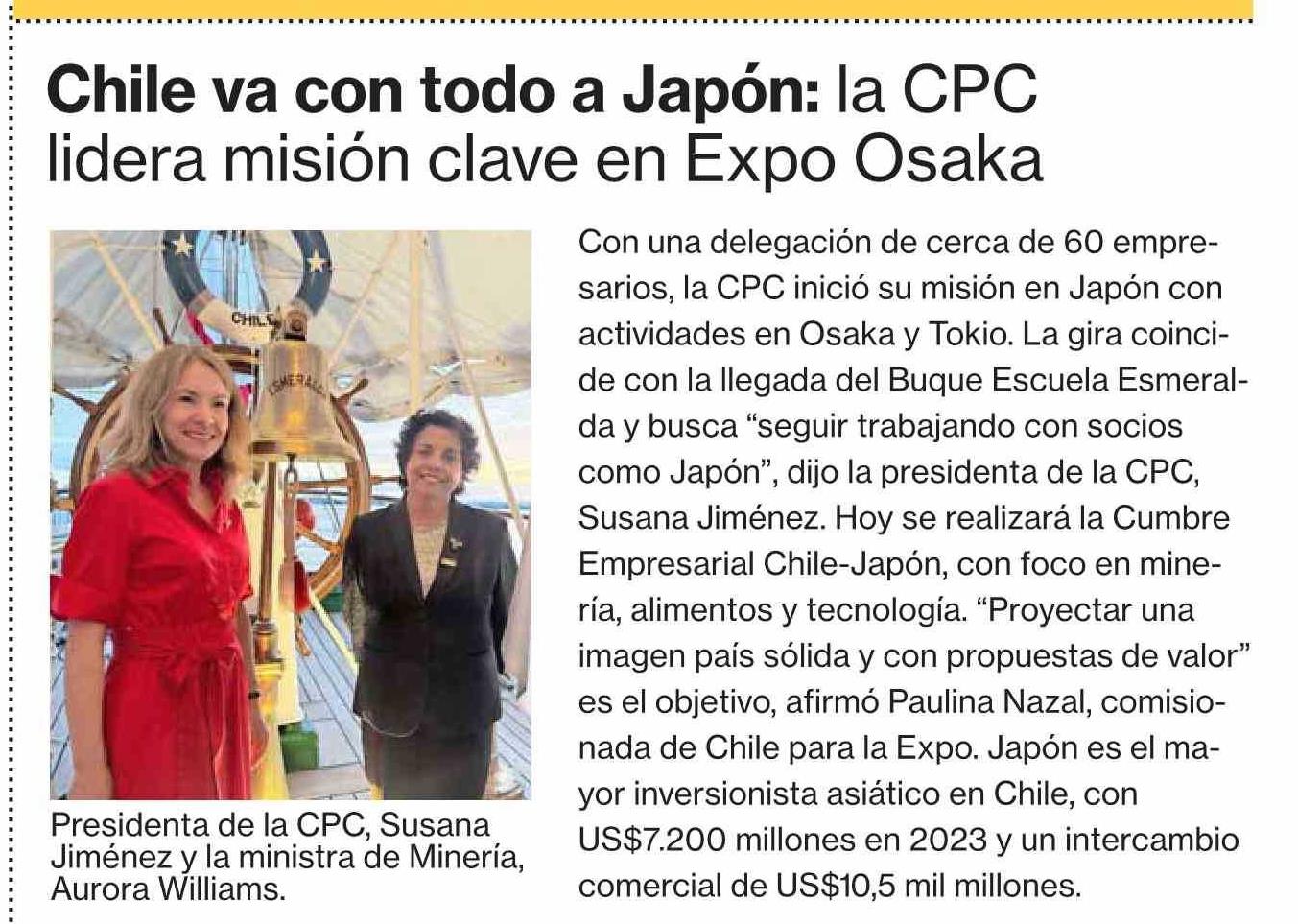 Chile va con todo a Japón: la CPC lidera misión clave en Expo Osaka 16-06-2025 La Segunda |