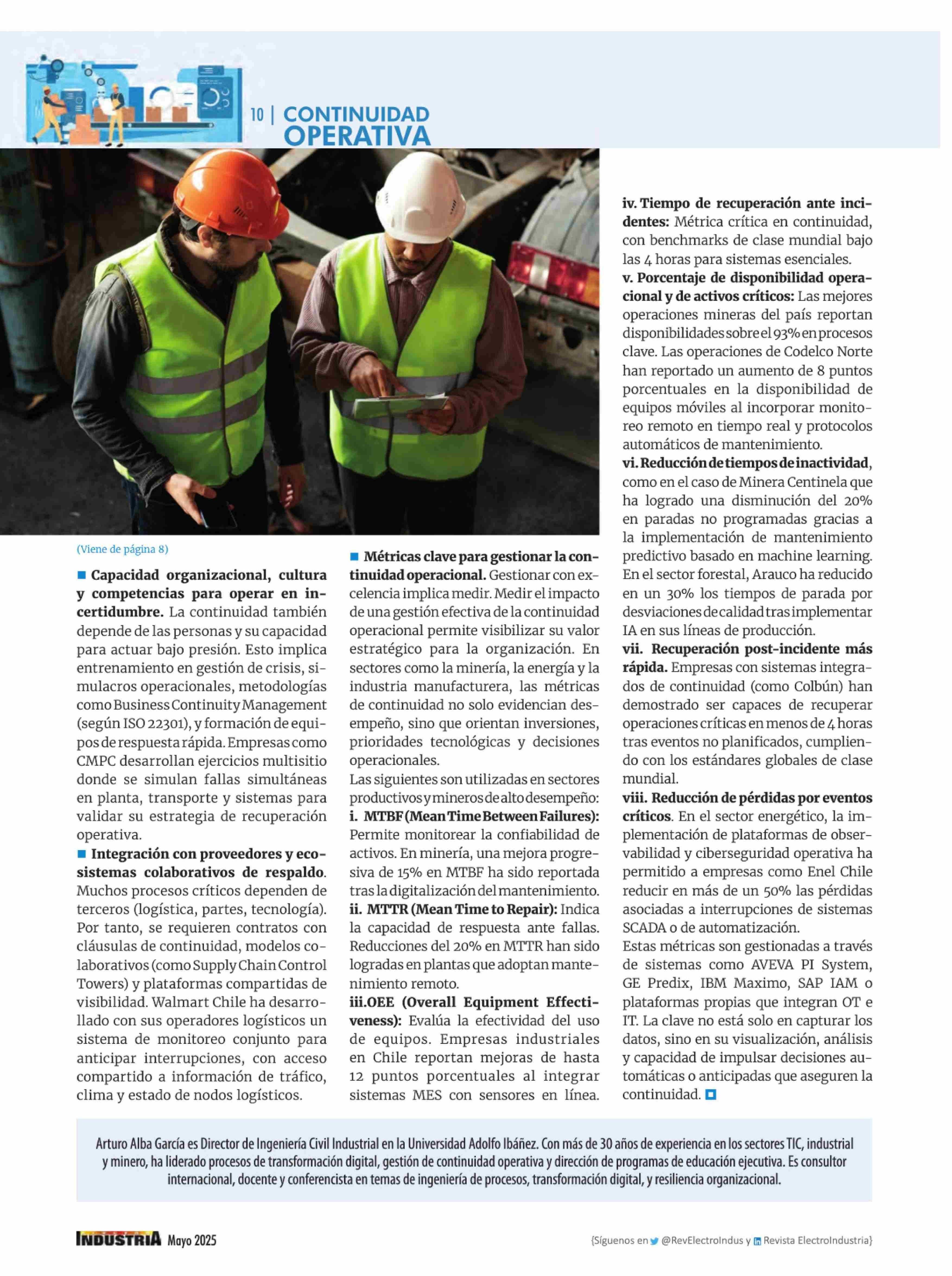 Continuidad operacional: La nueva frontera estratégica de las industrias resilientes 30-05-2025 Revista Electro Industria |