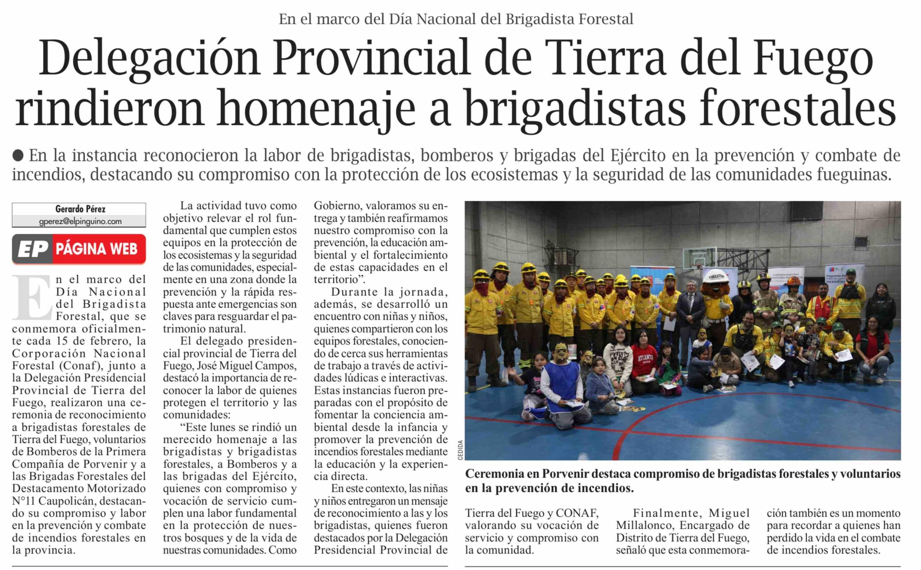 Delegación Provincial de Tierra del Fuego rindieron homenaje a brigadistas forestales 18-02-2026 El Pingüino |