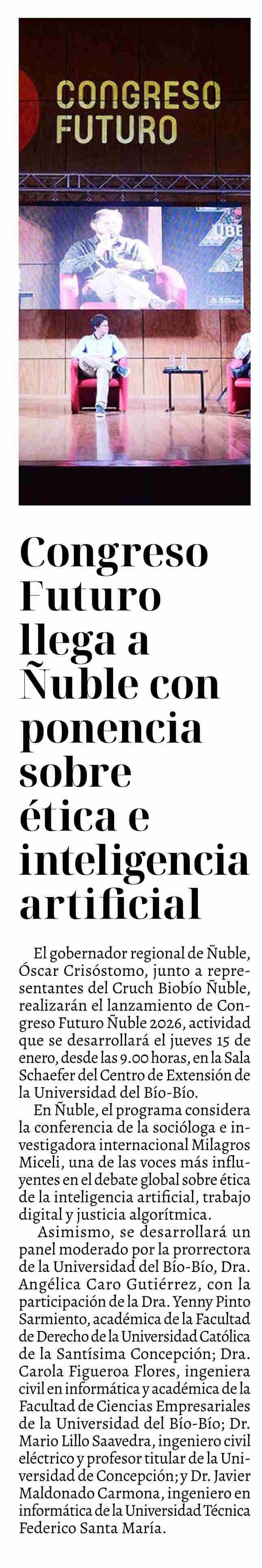 Congreso Futuro llega a Ñuble con ponencia sobre ética e inteligencia artificial 09-01-2026 La Discusión |