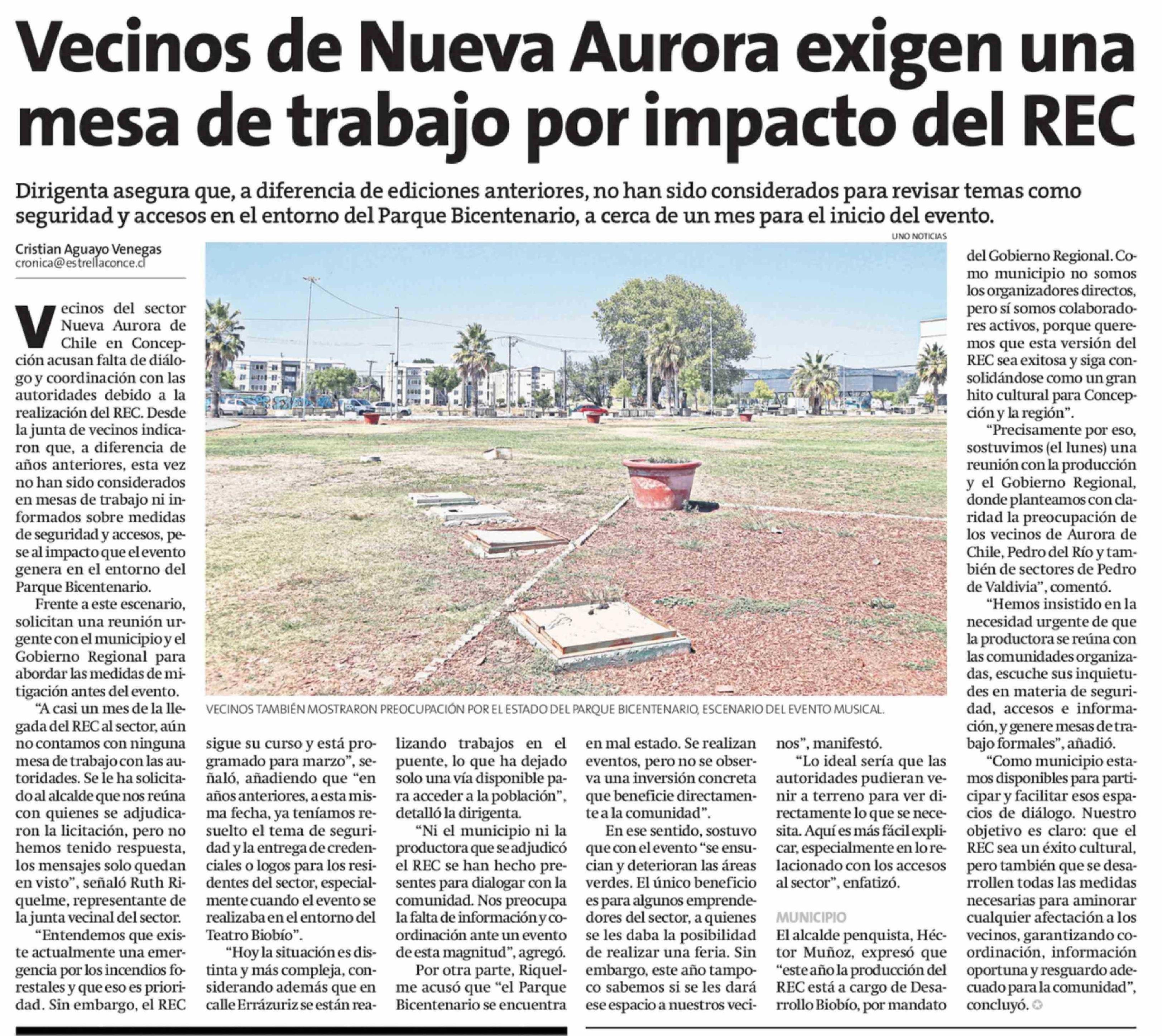 Vecinos de Nueva Aurora exigen una mesa de trabajo por impacto del REC 18-02-2026 La Estrella de Concepción |