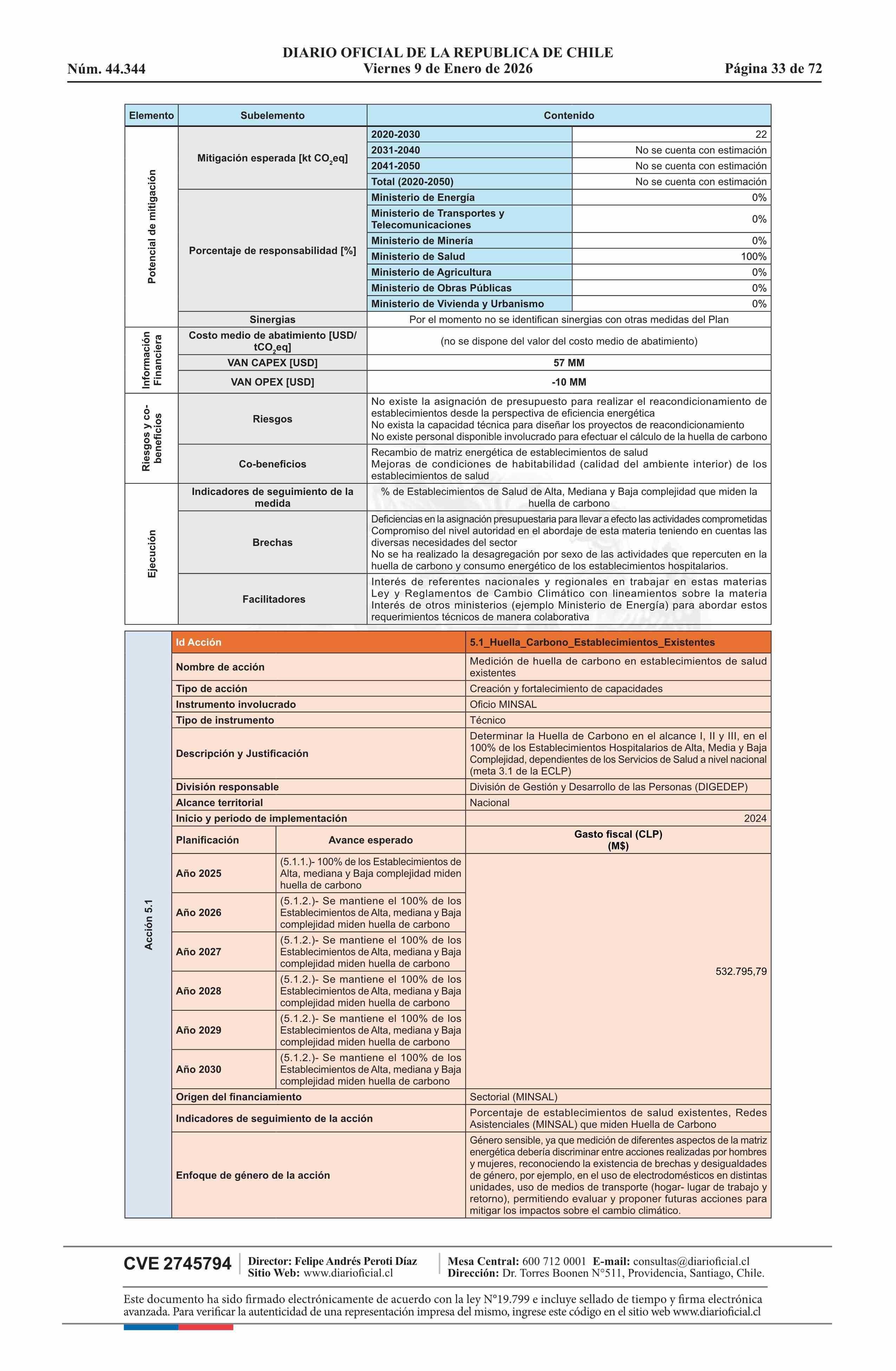Decreto número 48, de 2024.- Aprueba Plan Sectorial de Mitigación del Cambio Climático del Ministerio de Salud