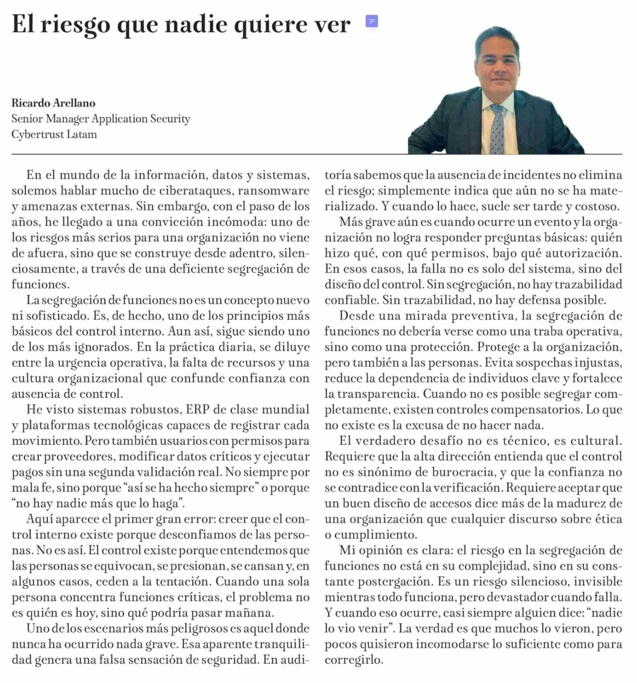 Título: Columnas de Opinión: El riesgo que nadie quiere ver