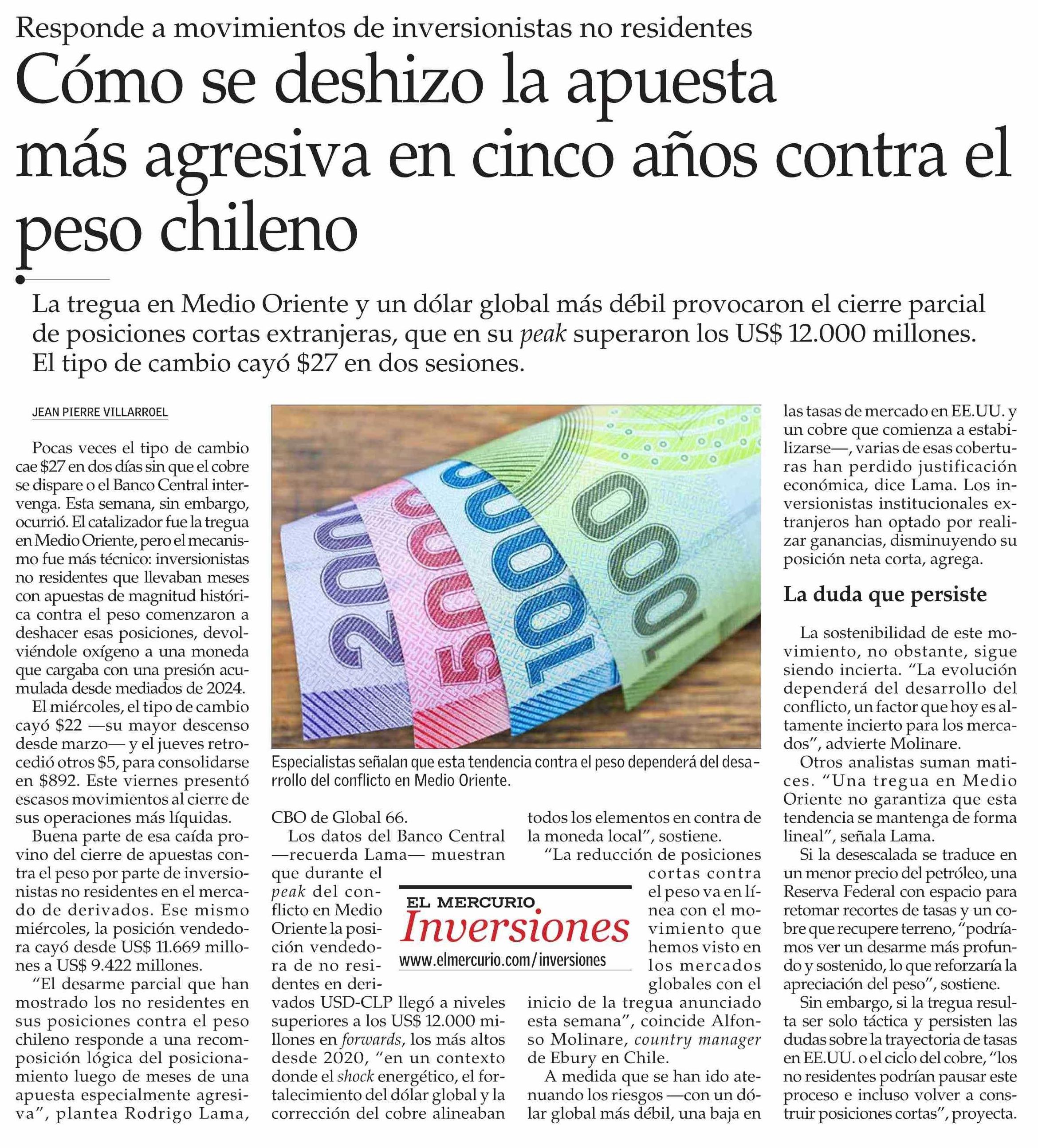 Cómo se deshizo la apuesta más agresiva en cinco años contra el peso chileno 13-04-2026 El Mercurio |