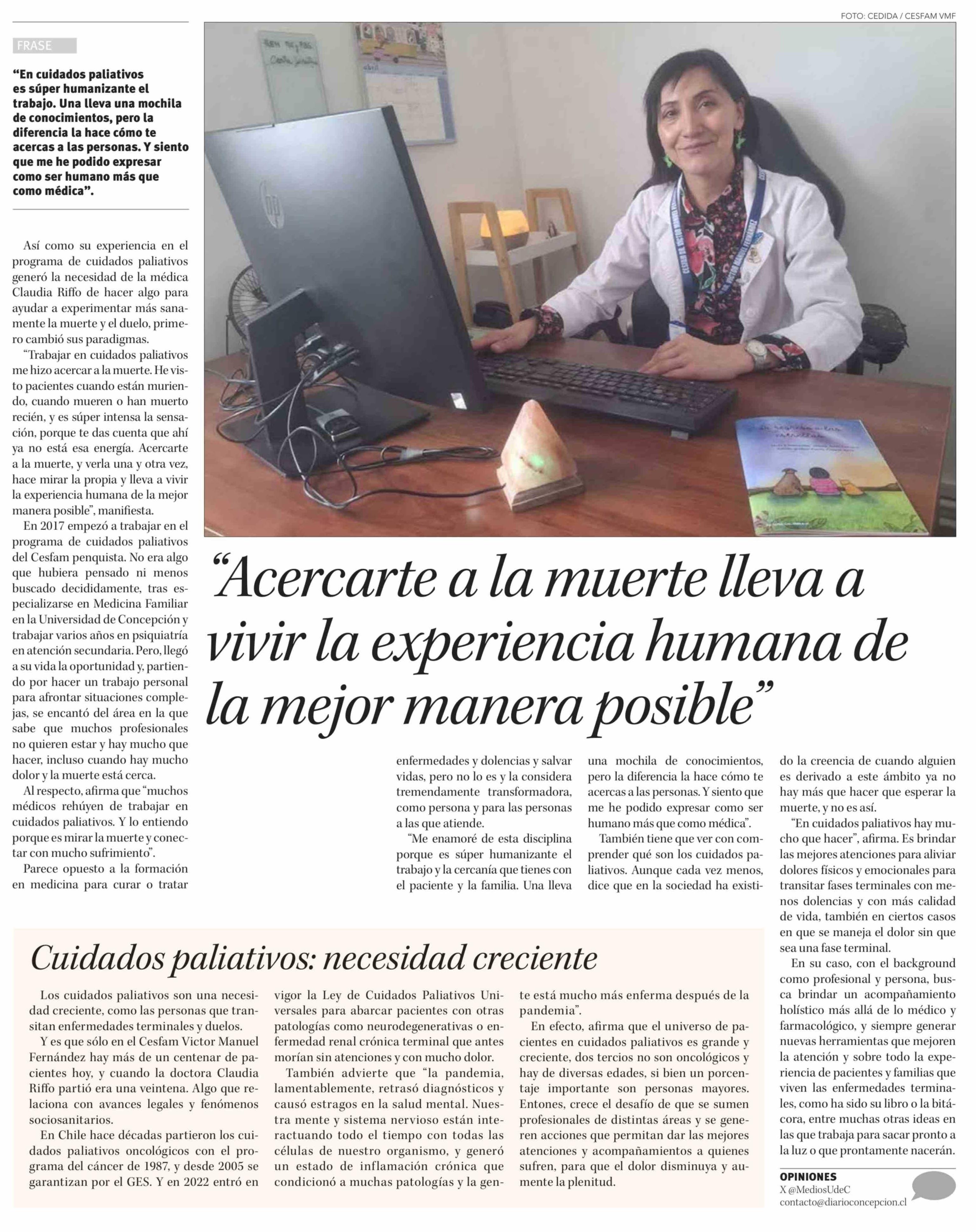 "Acercarte a la muerte lleva a vivir la experiencia humana de la mejor manera posible" 19-04-2026 Diario Concepción |