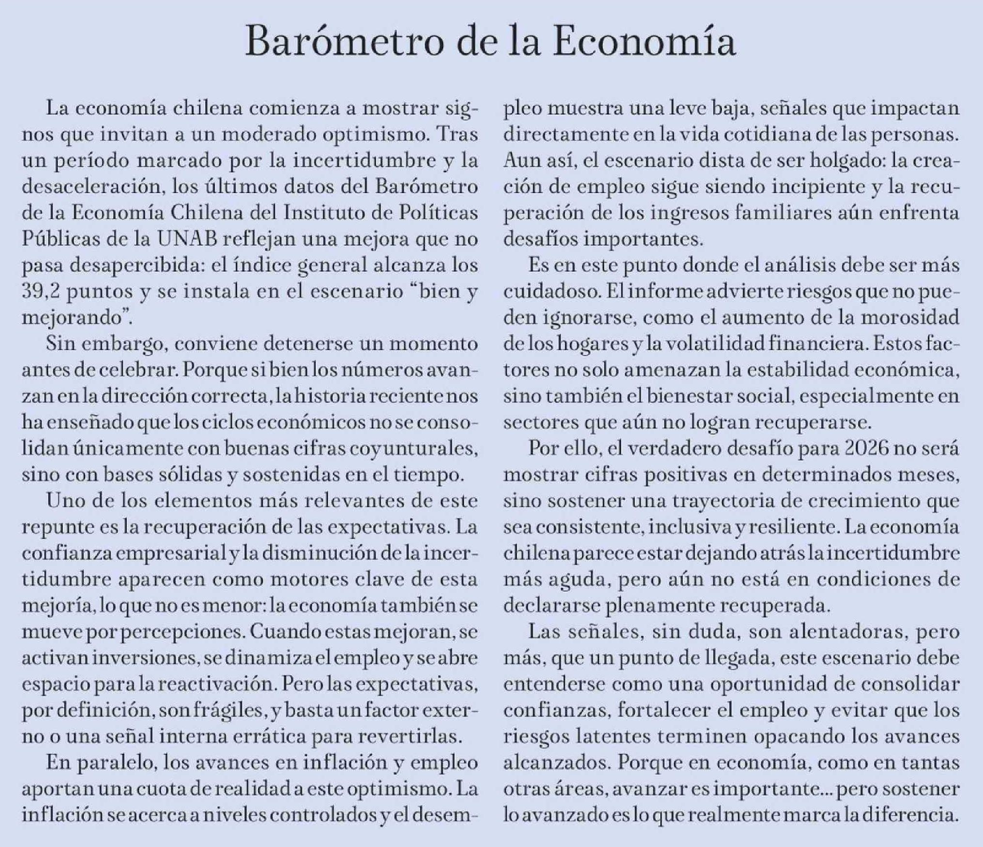 | Título: | Editorial: Barómetro de la Economía |