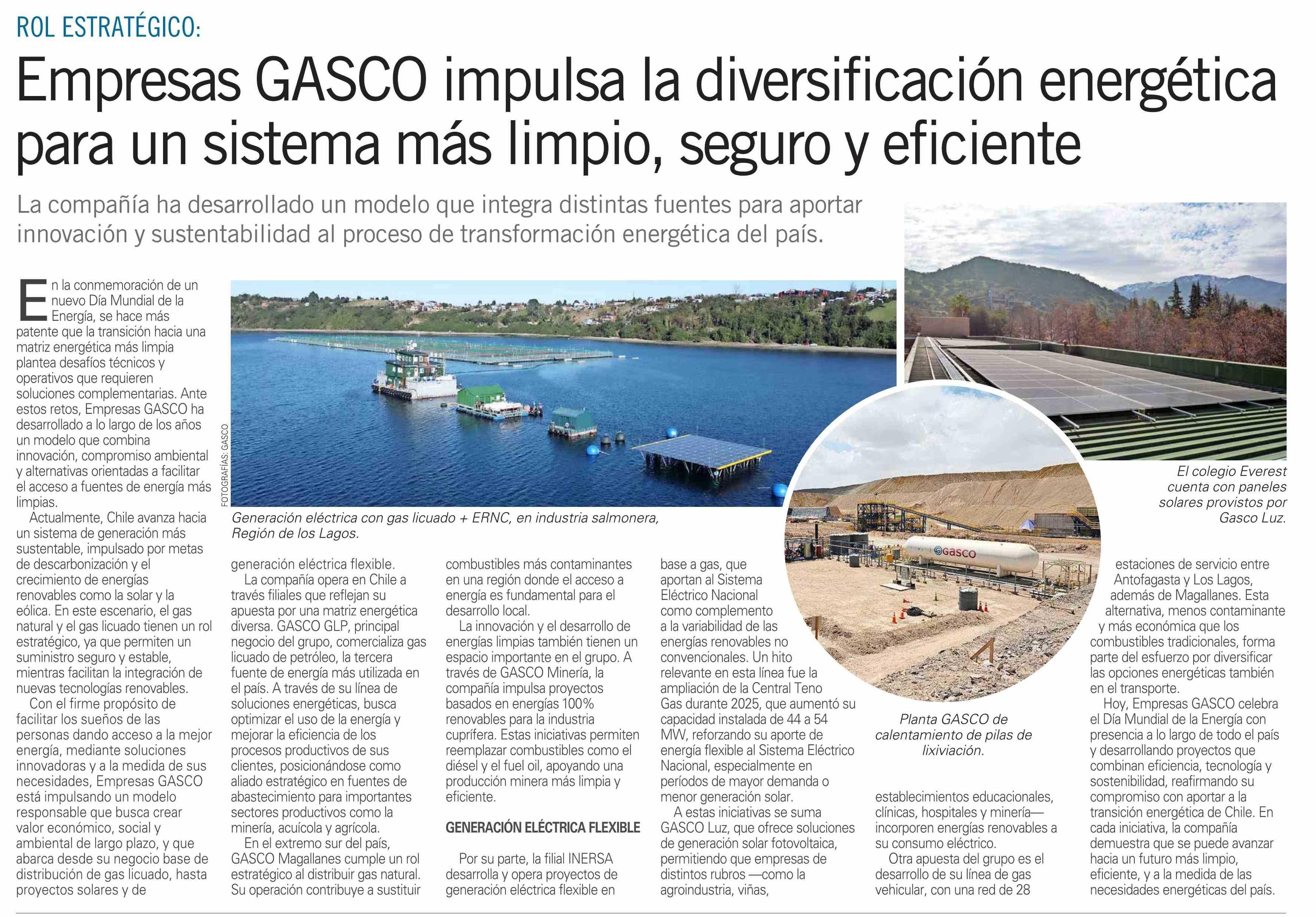 Empresas GASCO impulsa la diversificación energética para un sistema más limpio, seguro y eficiente 14-02-2026 El Mercurio |