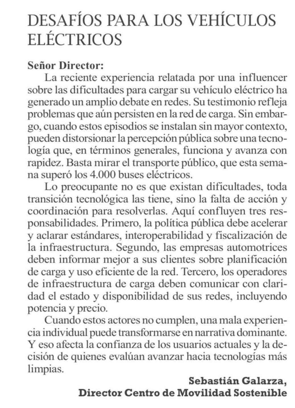 CARTAS: DESAFÍOS PARA LOS VEHÍCULOS ELÉCTRICOS