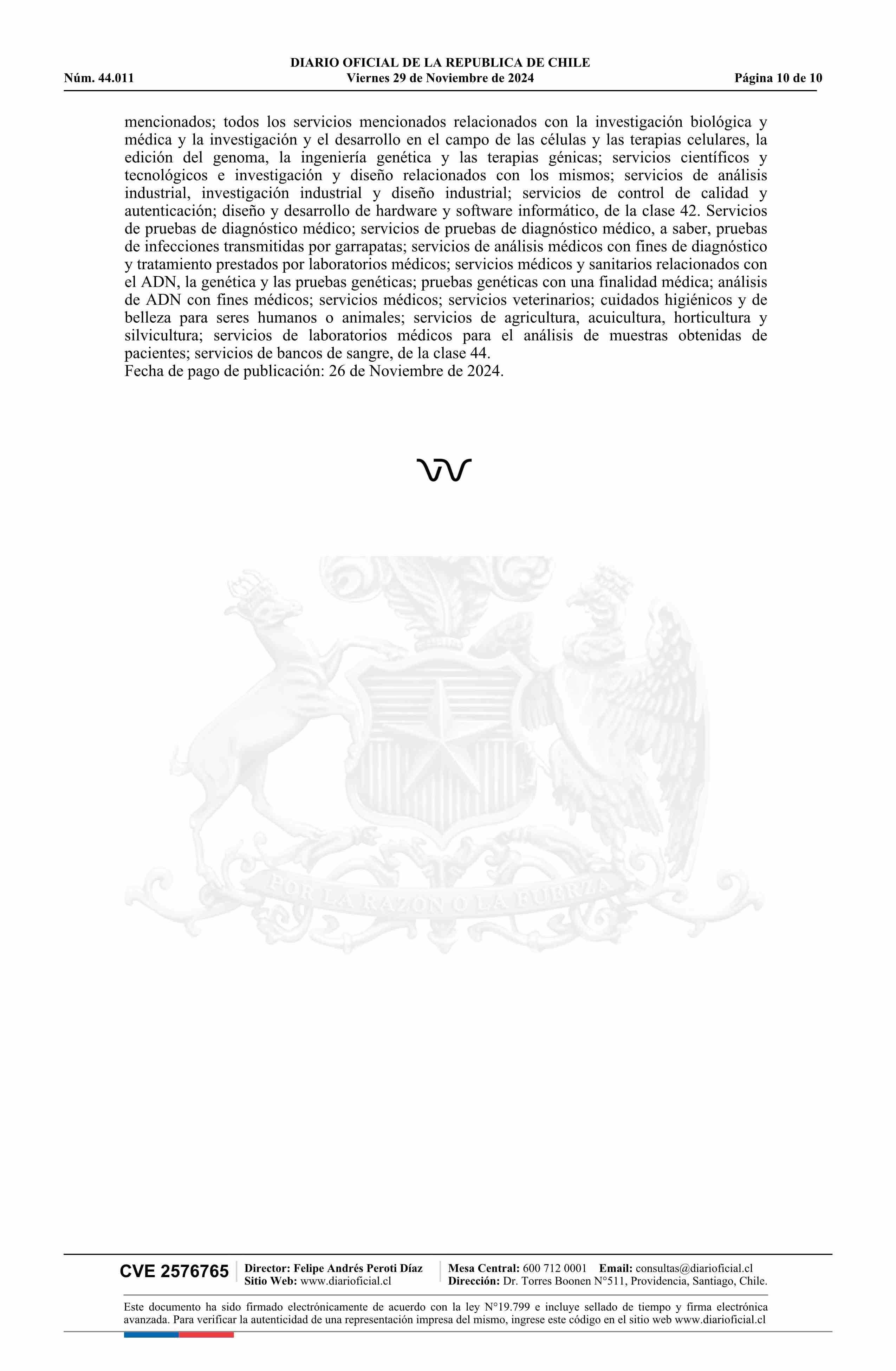 | Fuente: | Diario Oficial Edición Electrónica (Diario Oficial de Chile - 6 Marcas Y Patentes) | Página(s): | 1-10 |
