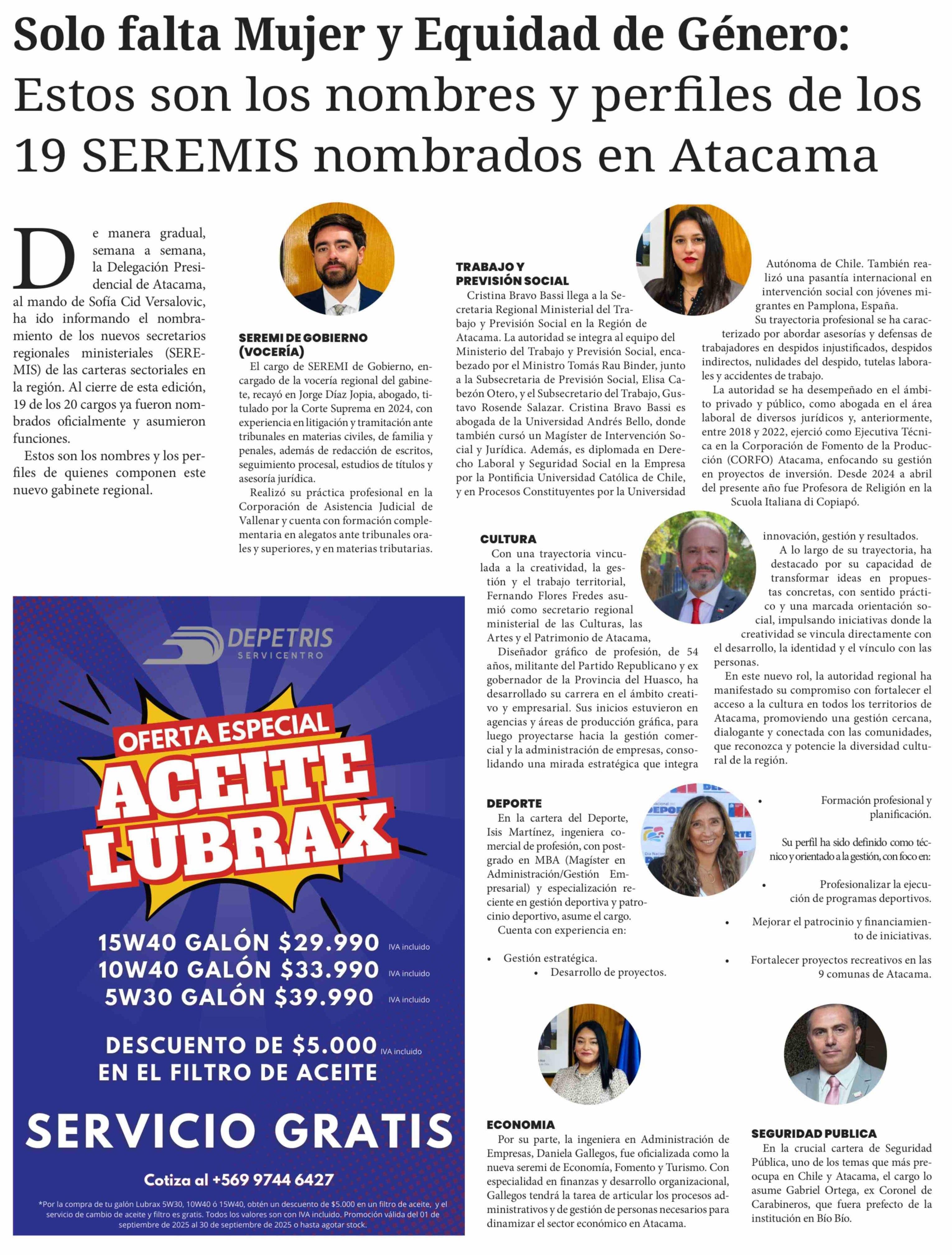 Solo falta Mujer y Equidad de Género: Estos son los nombres y perfiles de los 19 SEREMIS nombrados en Atacama 16-04-2026 Diario Chañarcillo |