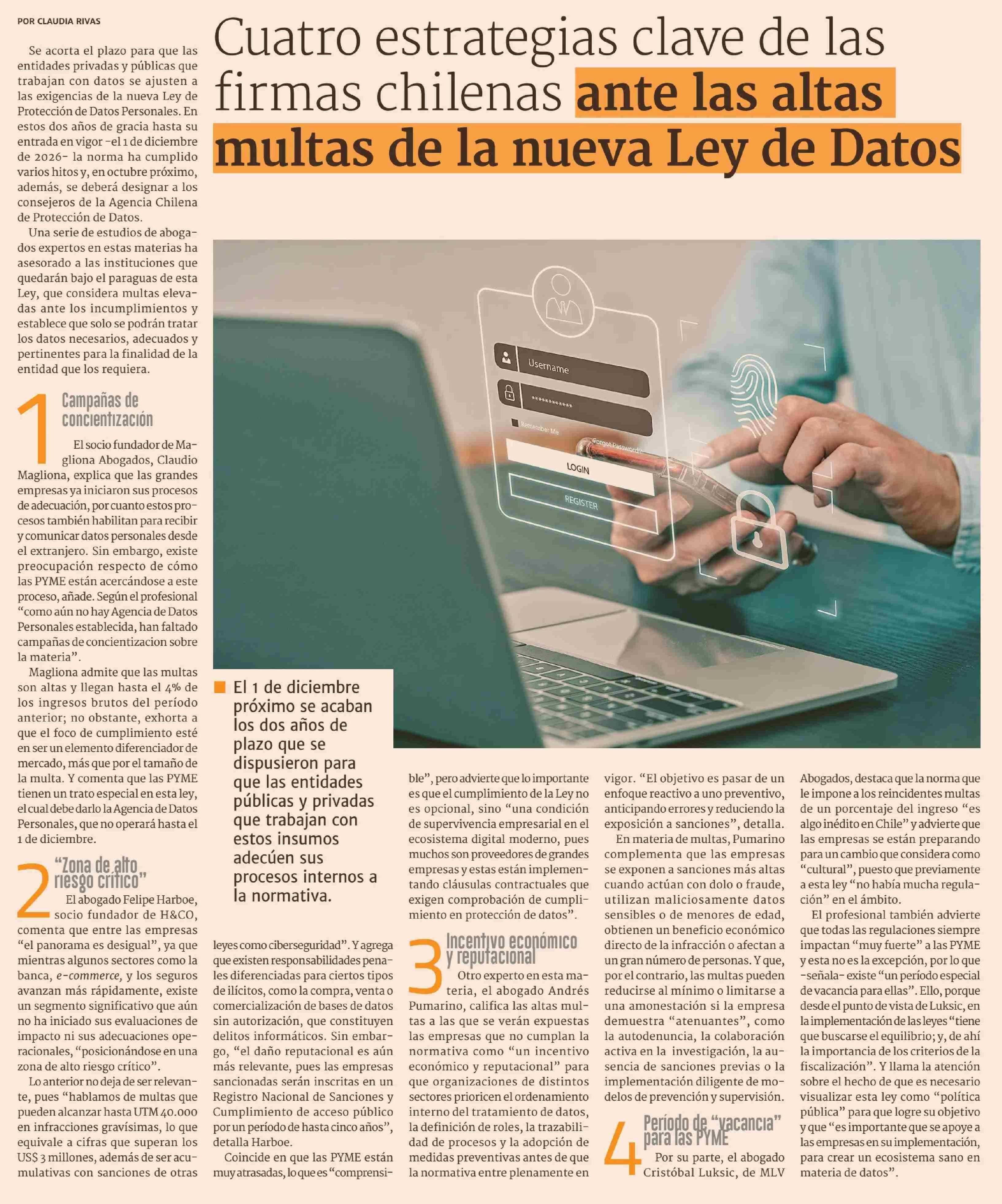 Cuatro estrategias clave de las firmas chilenas ante las altas multas de la nueva Ley de Datos 16-01-2026 Diario Financiero |