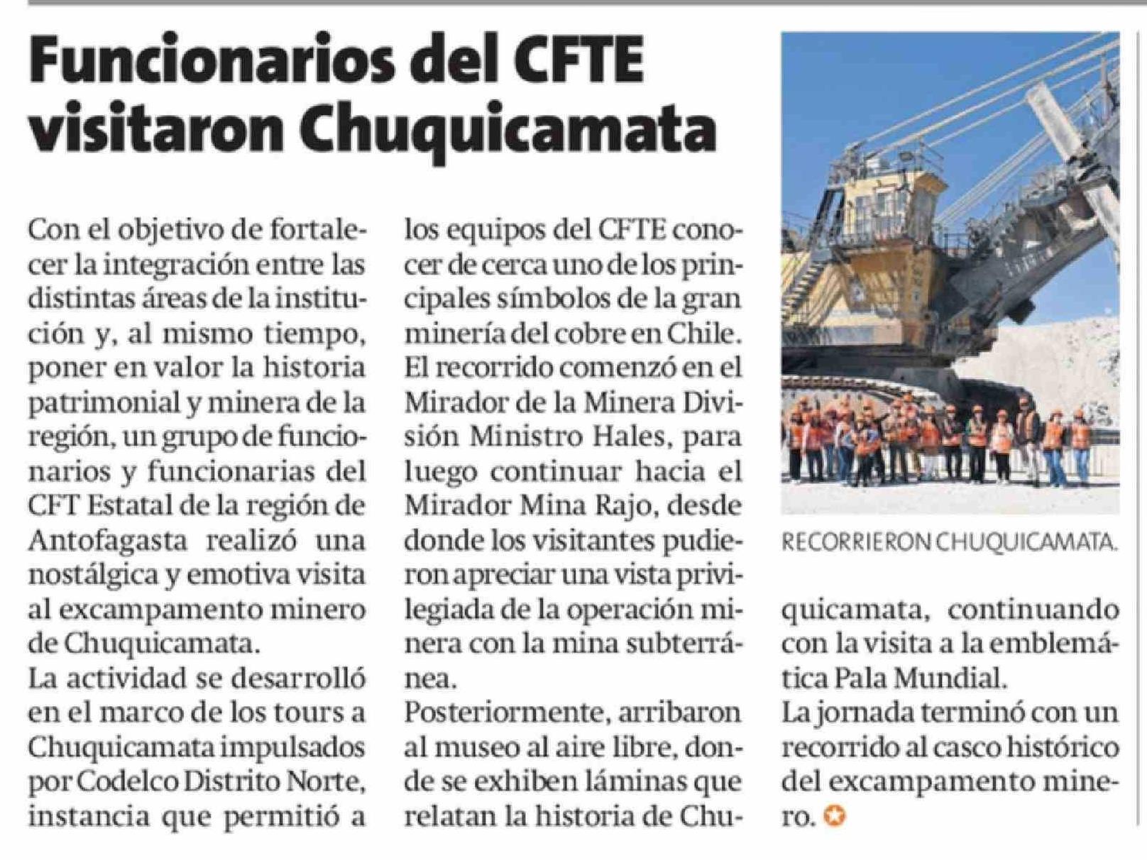 Funcionarios del CFTE visitaron Chuquicamata 18-02-2026 La Estrella de Antofagasta |