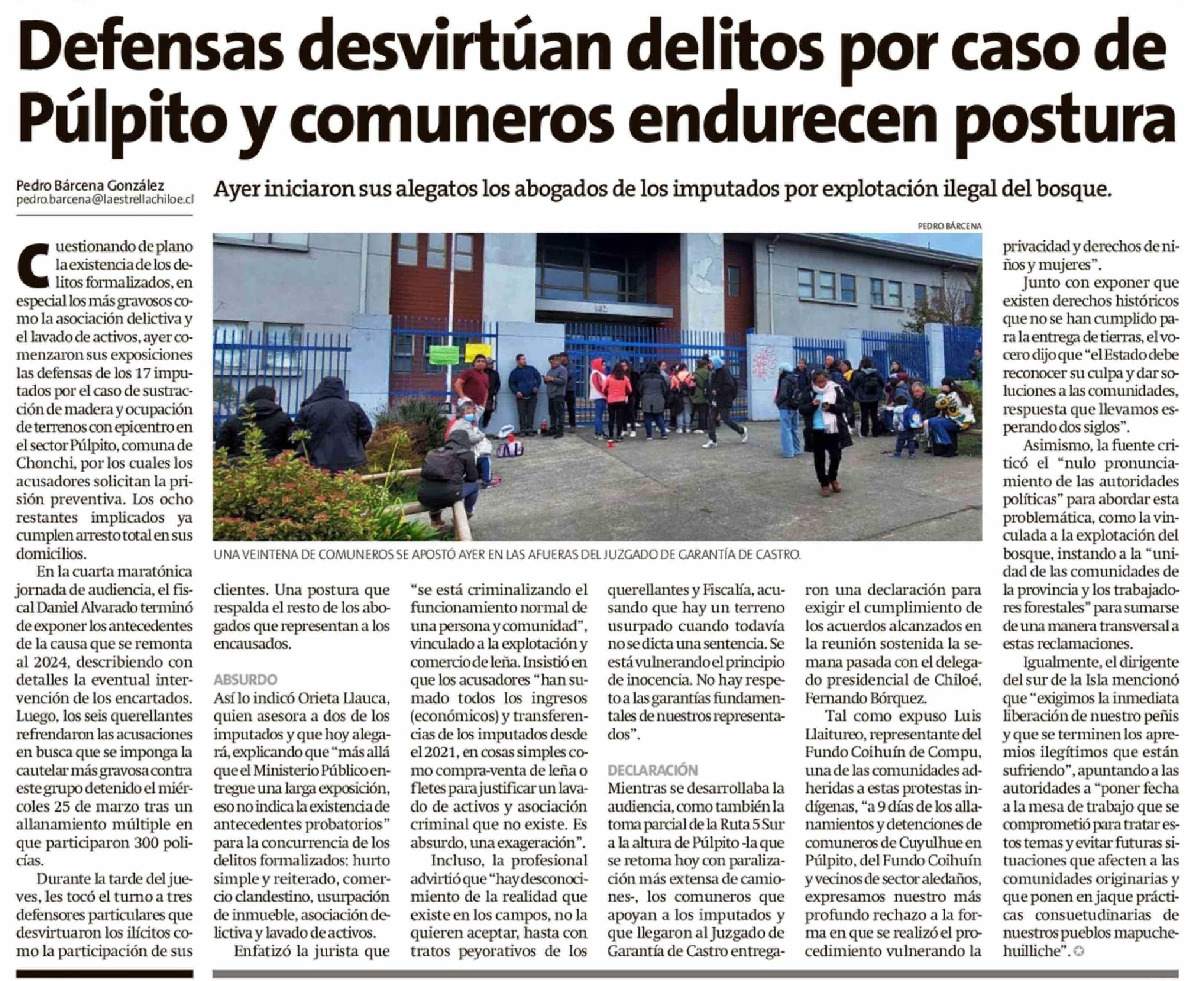 Título: Defensas desvirtúan delitos por caso de Pulpito y comuneros endurecen postura