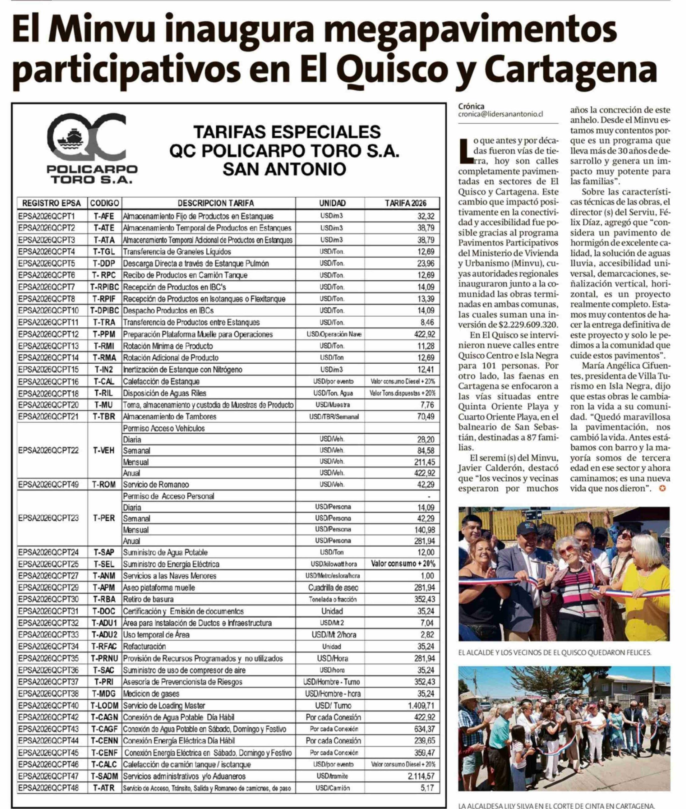 El Minvu inaugura megapavimentos participativos en El Quisco y Cartagena 12-02-2026 El Líder |