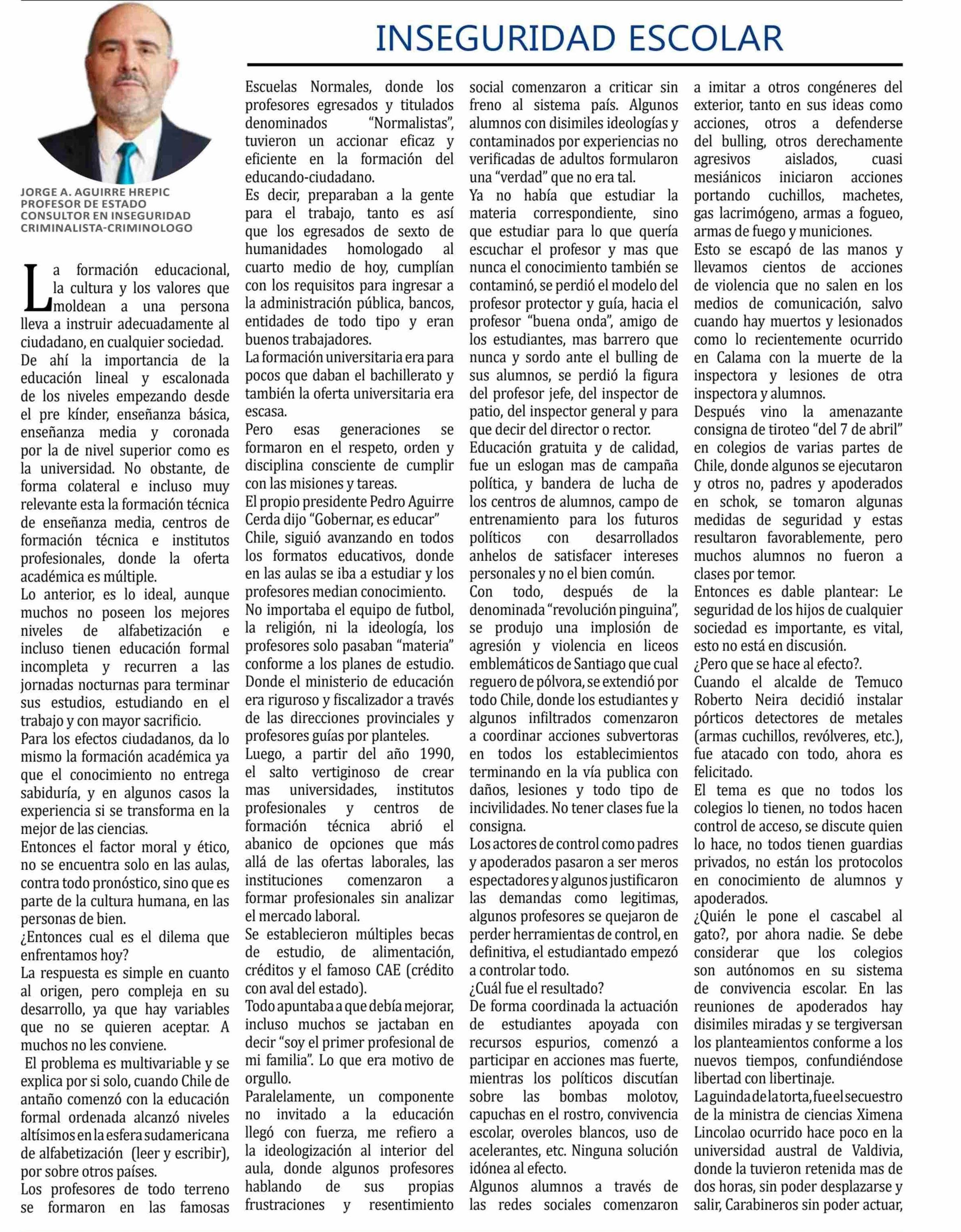 | Título: | COLUMNAS DE OPINIÓN: INSEGURIDAD ESCOLAR |