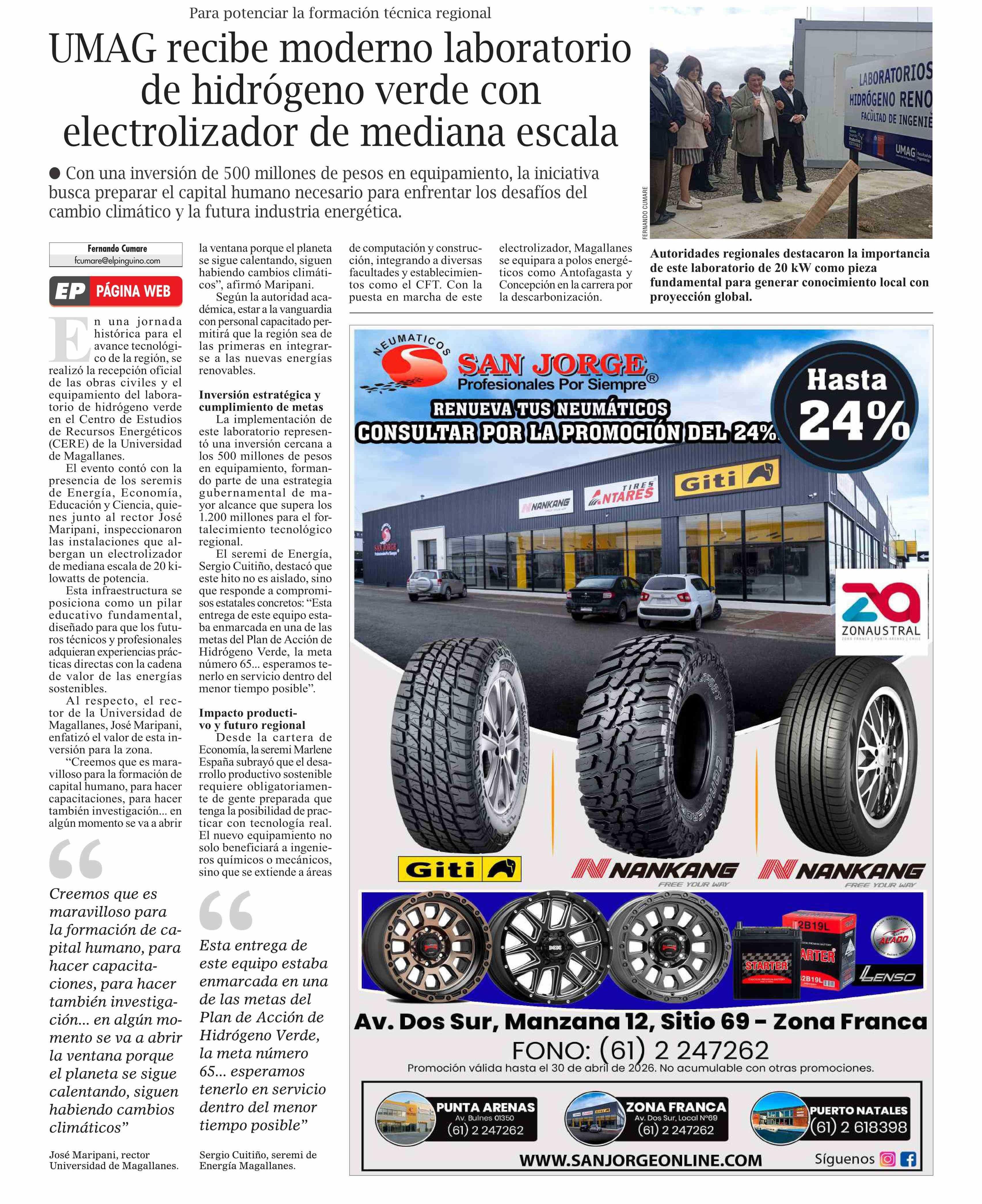 Título: UMAG recibe moderno laboratorio de hidrógeno verde con electrolizador de mediana escala
