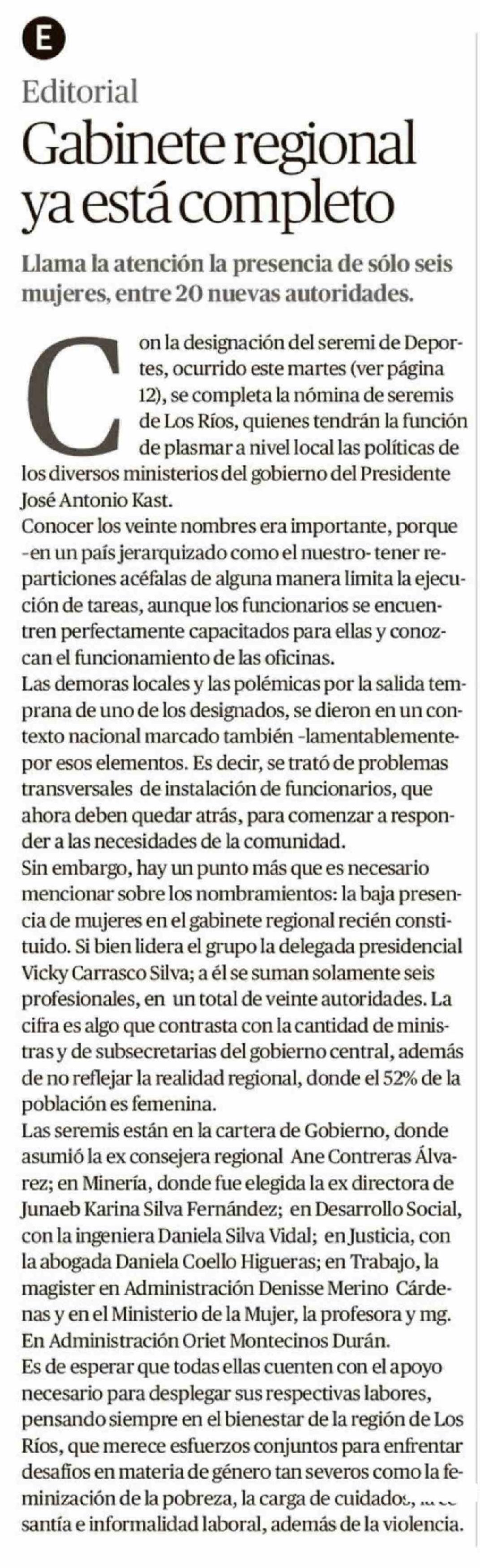Editorial: Gabinete regional ya está completo 23-04-2026 Diario Austral Región de Los Ríos |