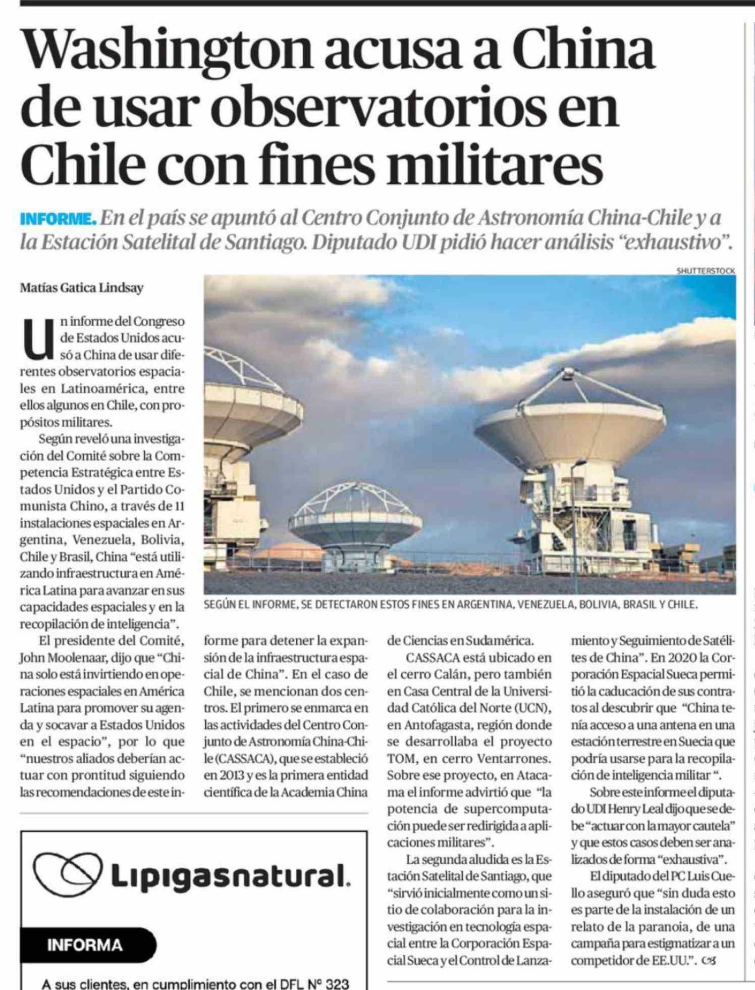 | Título: | Washington acusa a China de usar observatorios en Chile con fines militares |