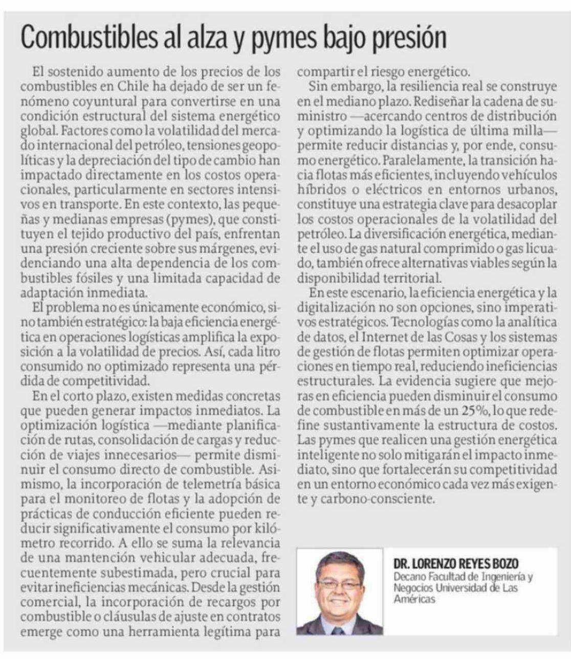 Título: Columnas de Opinión: Combustibles al alza y pymes bajo presión