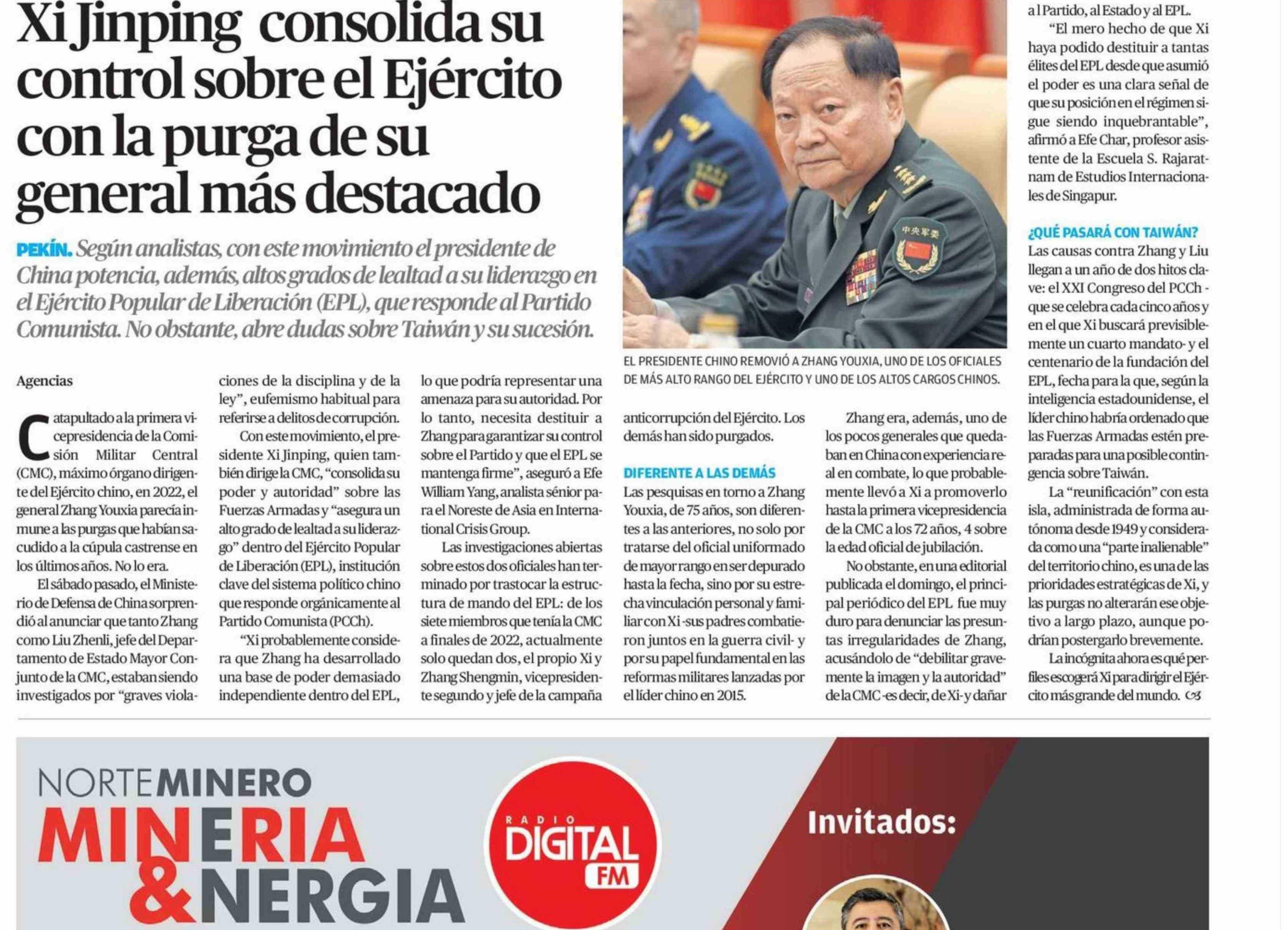 Título: Xi Jinping consolida su control sobre el Ejército con la purga de su general más destacado