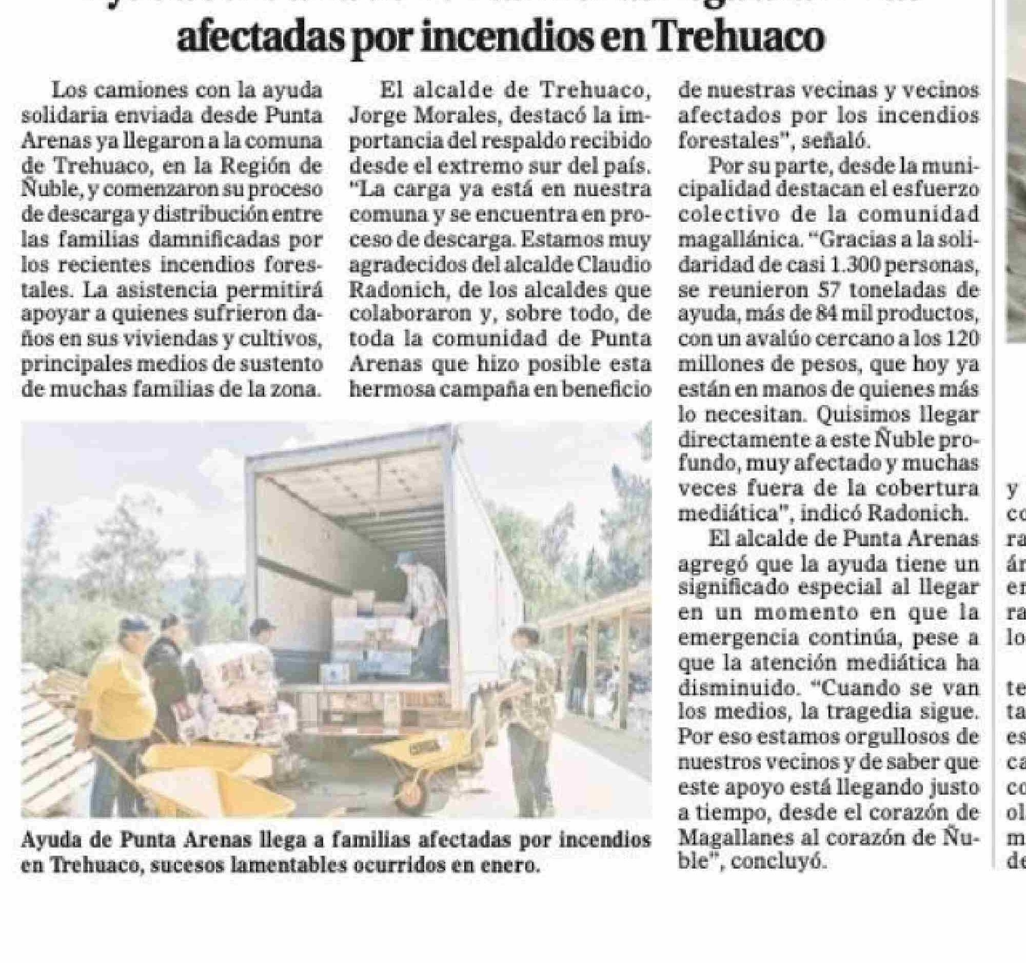 | Título: | Ayuda solidaria de Punta Arenas llega a familias afectadas por incendios en Trehuaco |