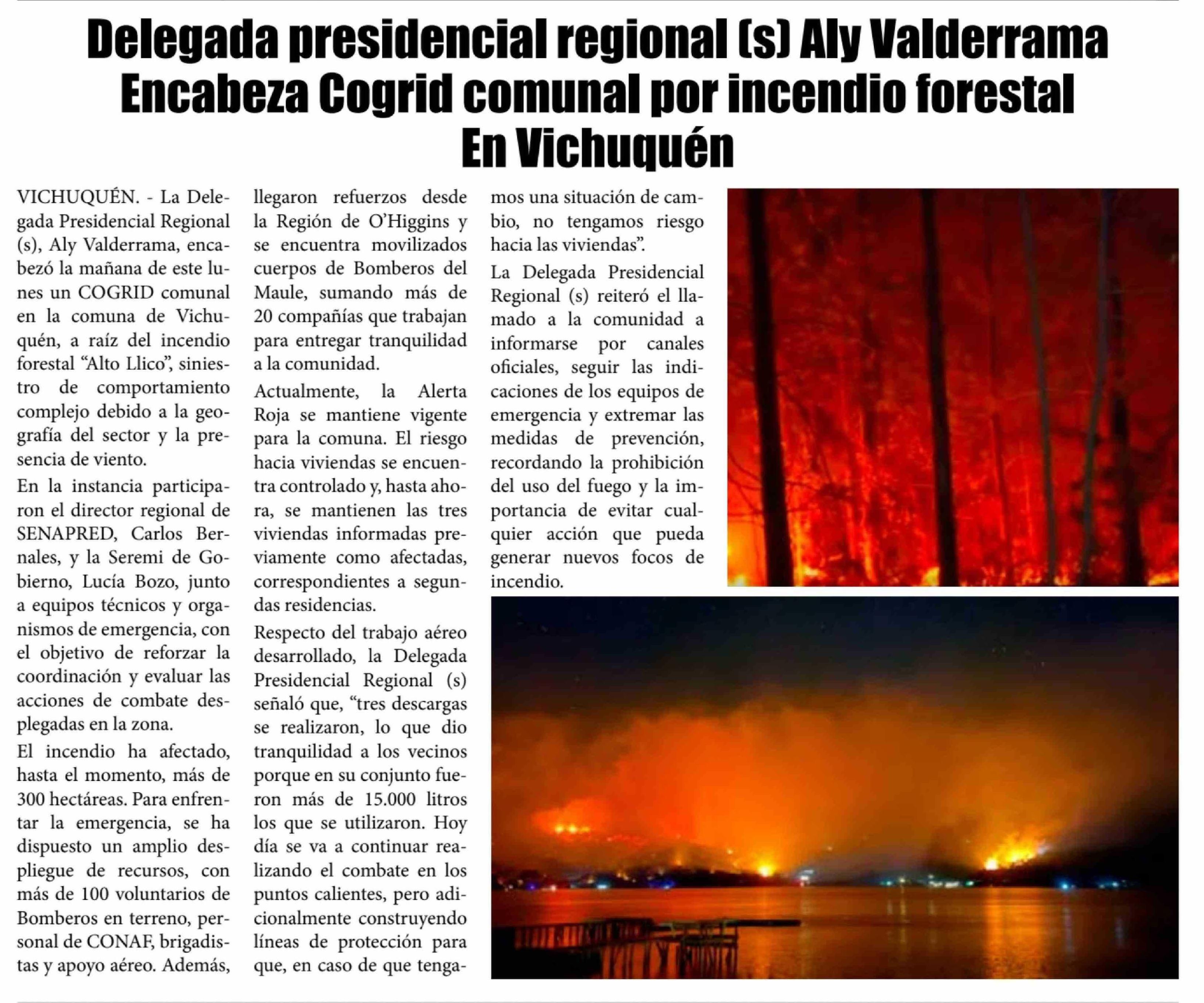 Título: Delegada presidencial regional (s) Aly Valderrama Encabeza Cogrid comunal por incendio forestal En Vichuquen