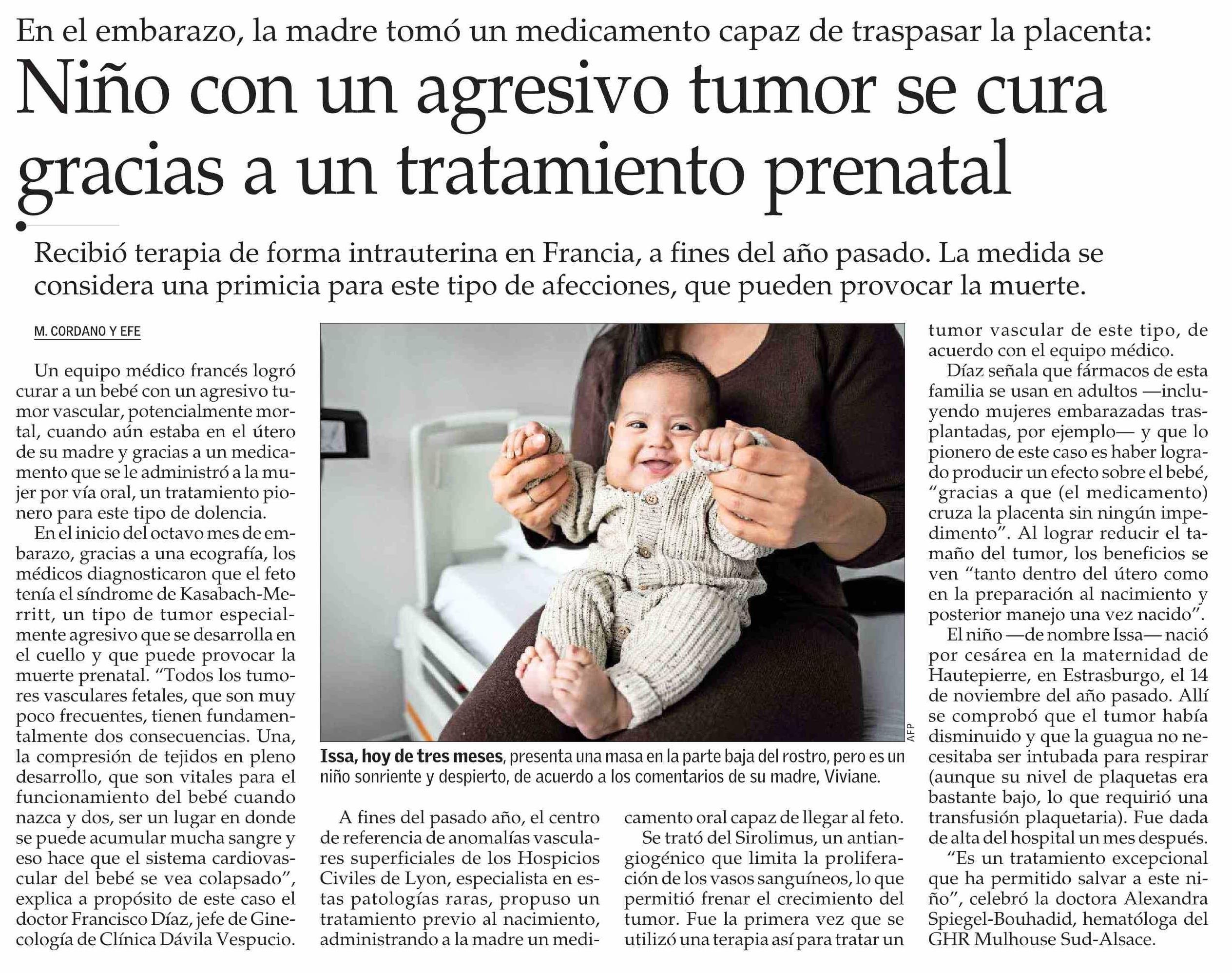 Niño con un agresivo tumor se cura gracias a un tratamiento prenatal 17-02-2026 El Mercurio |