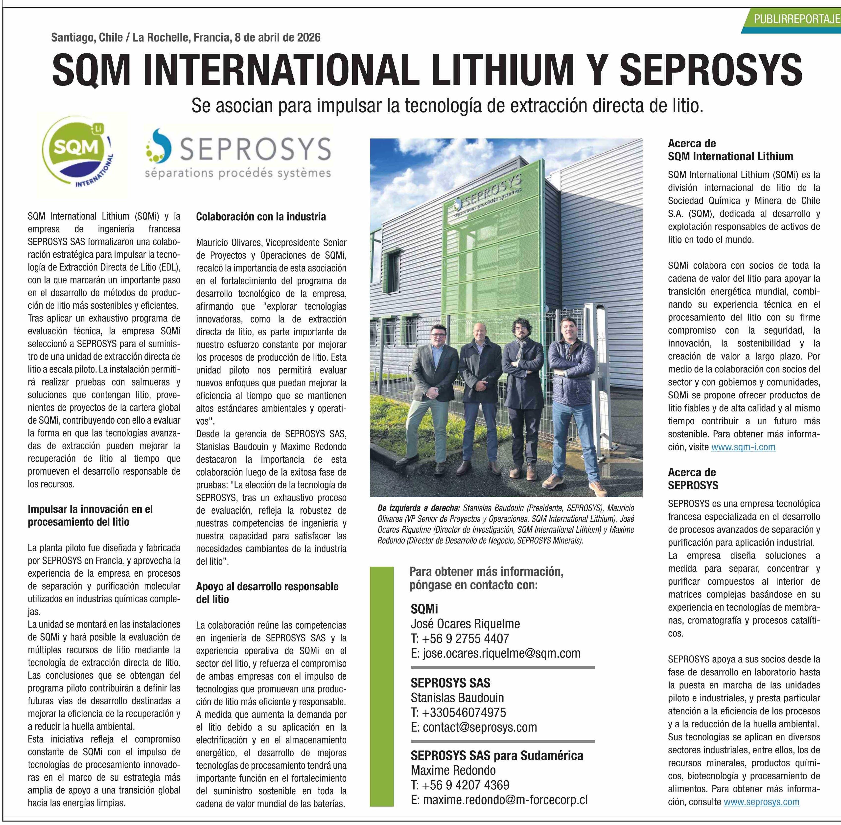 SQM INTERNATIONAL LITHIUM Y SEPROSYS 08-04-2026 El Mercurio |