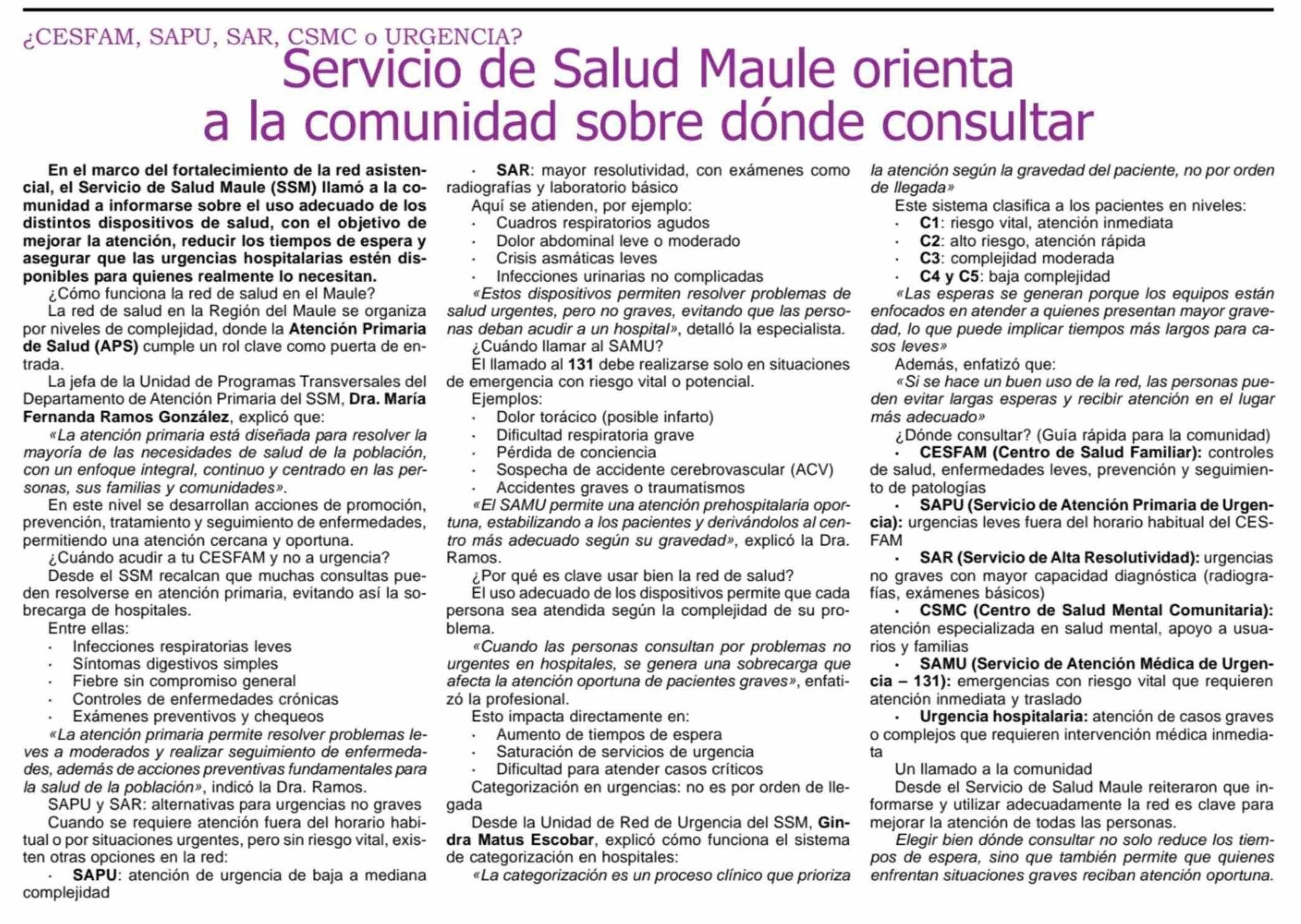 Servicio de Salud Maule orienta a la comunidad sobre dónde consultar 25-03-2026 Maule Hoy |