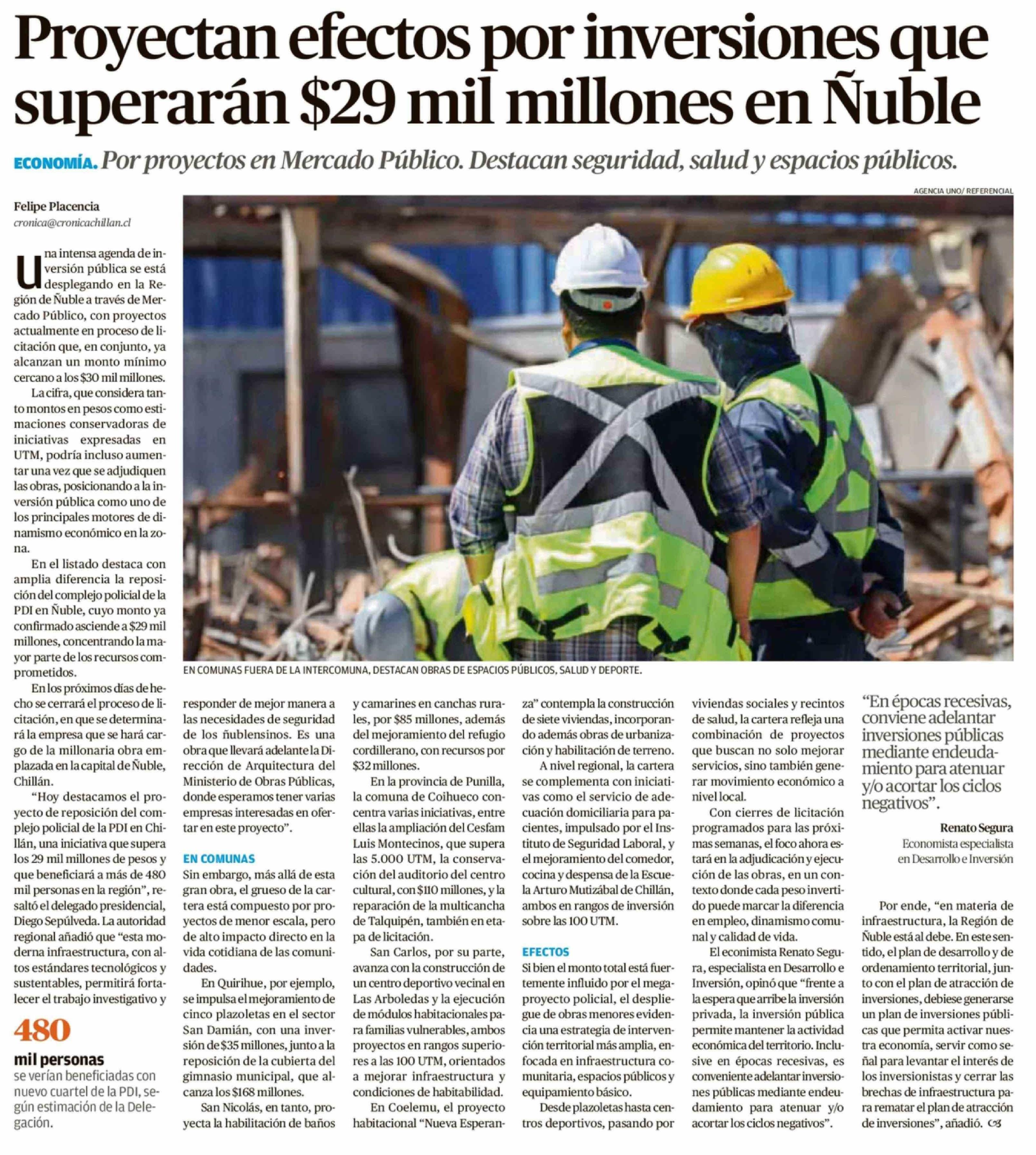Título: Proyectan efectos por inversiones que superarán $29 mil millones en Ñuble