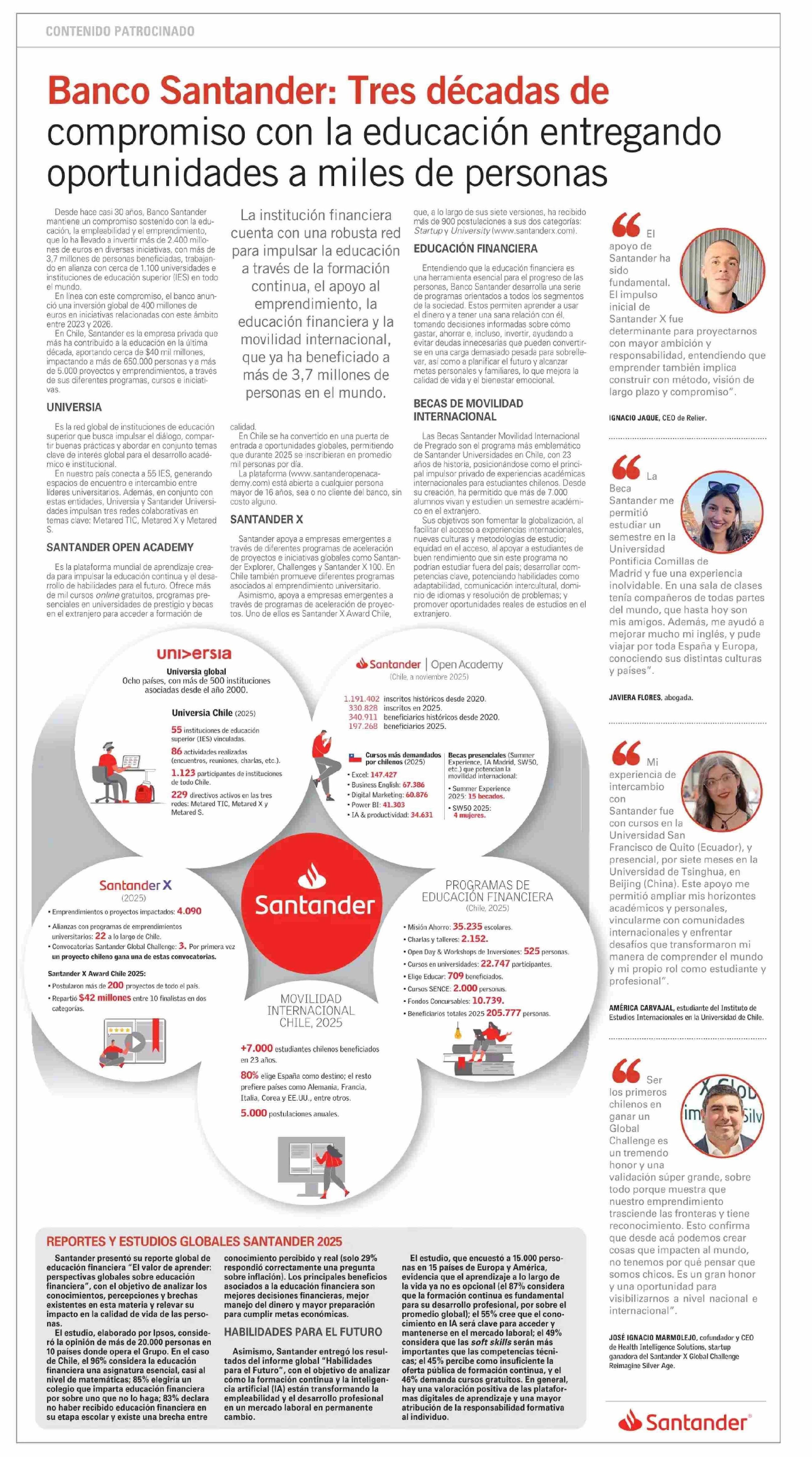 Título: Banco Santander: Tres décadas de compromiso con la educación entregando oportunidades a miles de personas