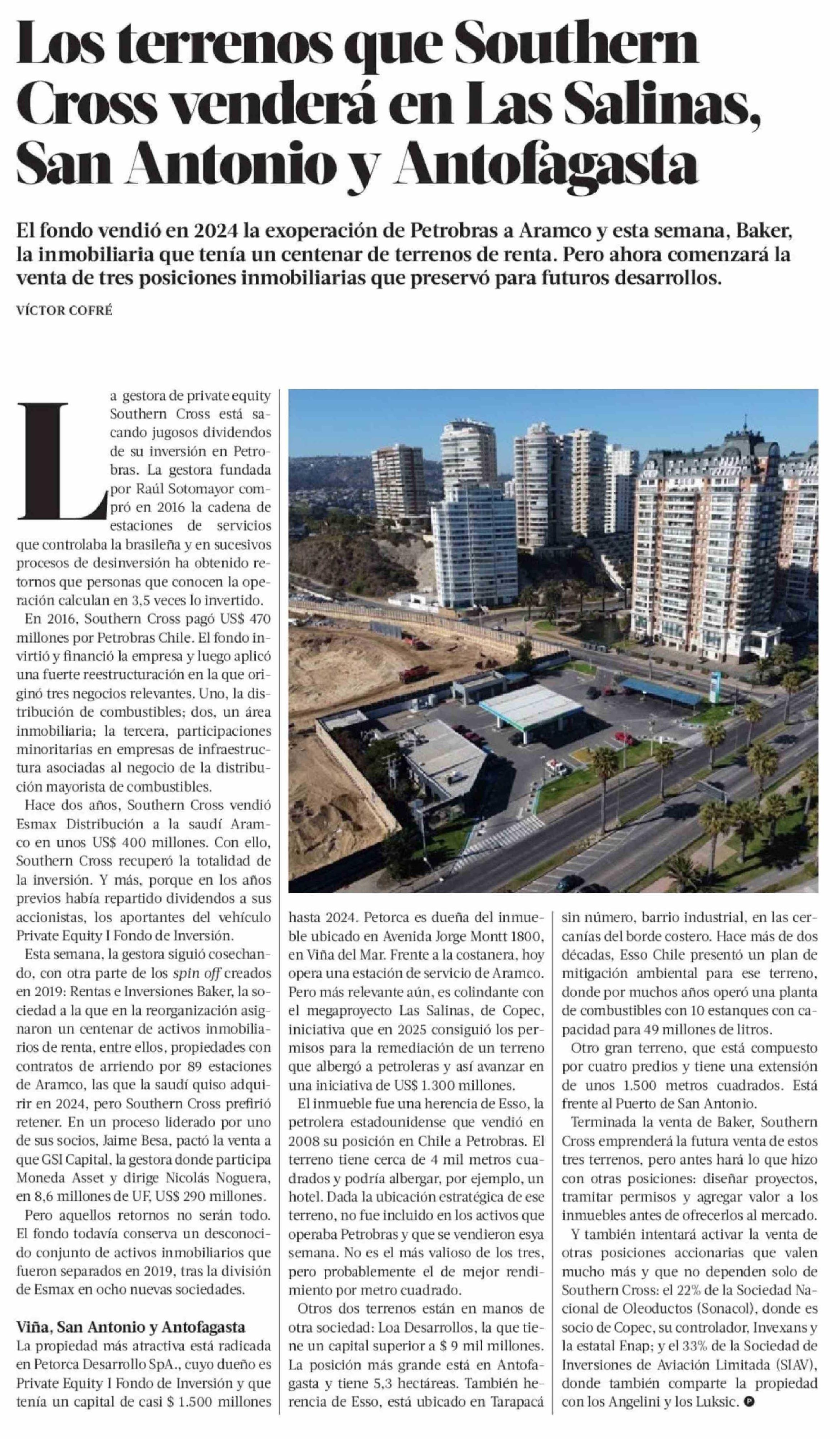 Los terrenos que Southern Cross venderá en Las Salinas, San Antonio y Antofagasta 25-04-2026 La Tercera |