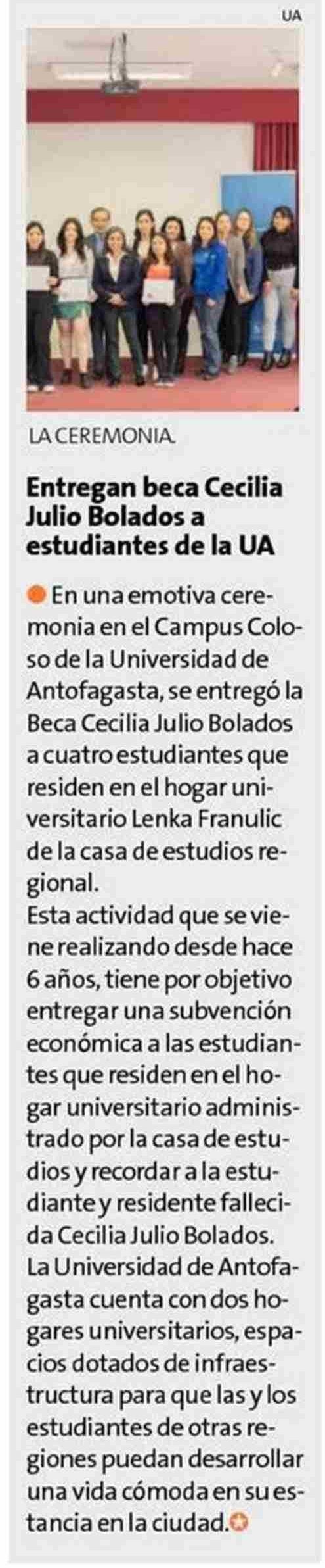 Entregan beca Cecilia Julio Bolados a estudiantes de la UA 25-07-2023 La Estrella de Antofagasta |