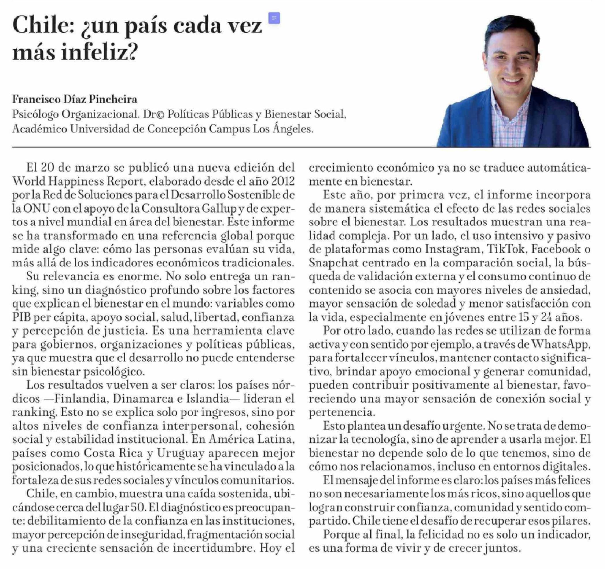 Título: Columnas de Opinión: Chile: ¿ un país cada vez más infeliz?